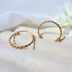 以細緻扭繩線條呈現自然光影的流動感,佩戴時輕巧貼合,展現低調卻鮮明的優雅層次感,單戴或搭配皆能襯出乾淨質感。