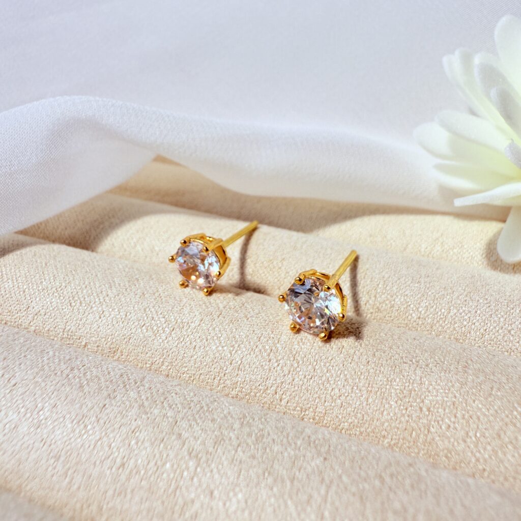 晶透如星光的黃金耳釘,搭配晶鑽切割工藝,簡約卻閃耀動人。無論日常或約會,都能展現高雅氣質,為妳的造型增添亮眼焦點。