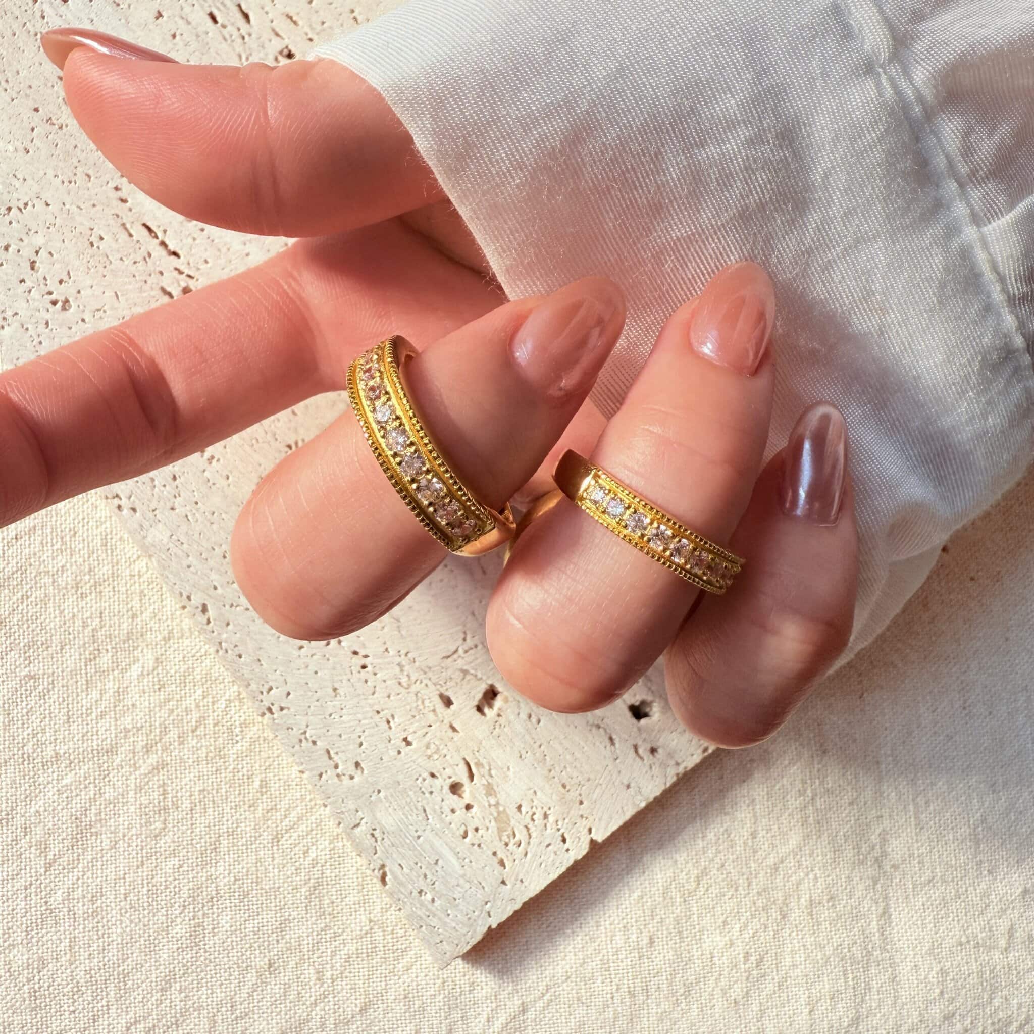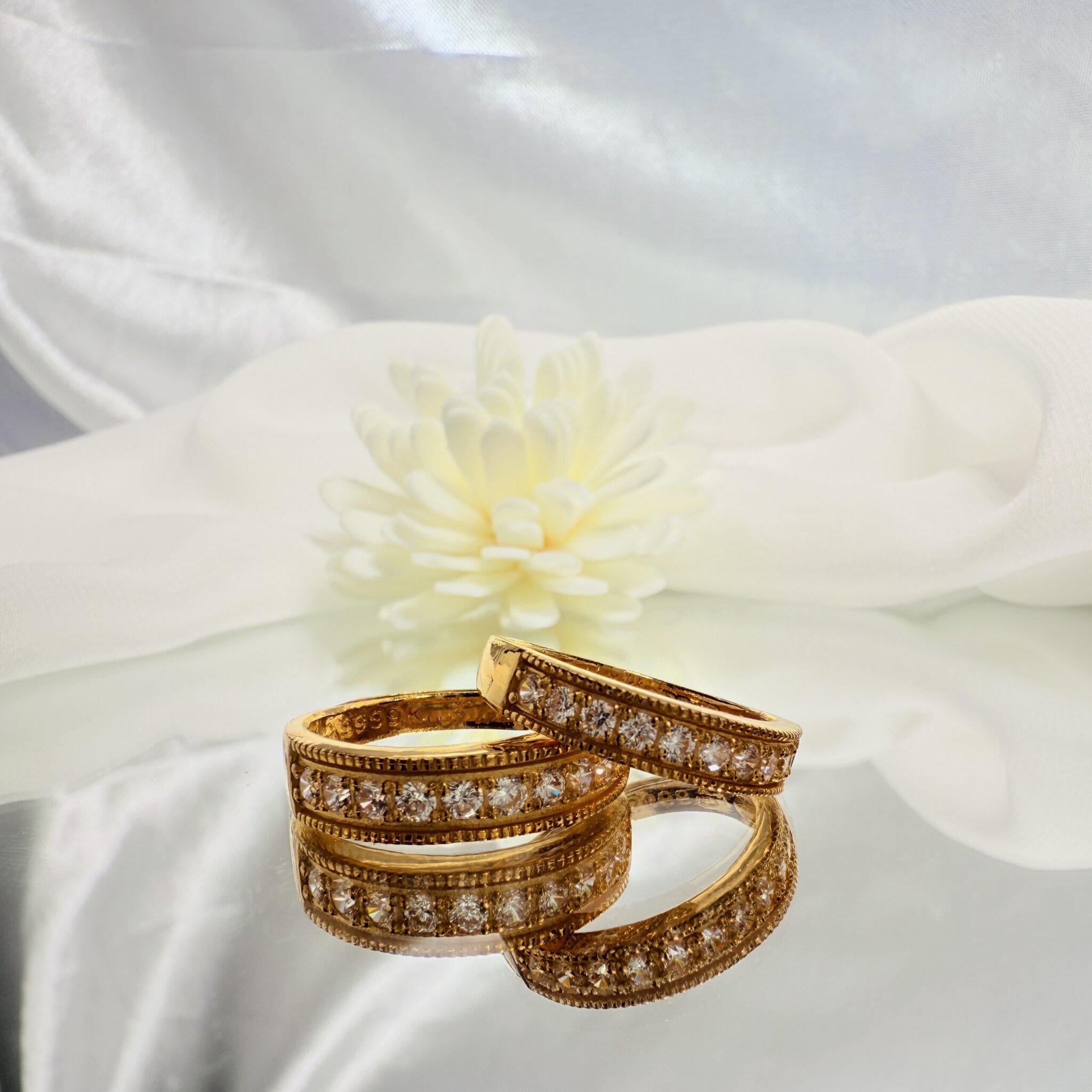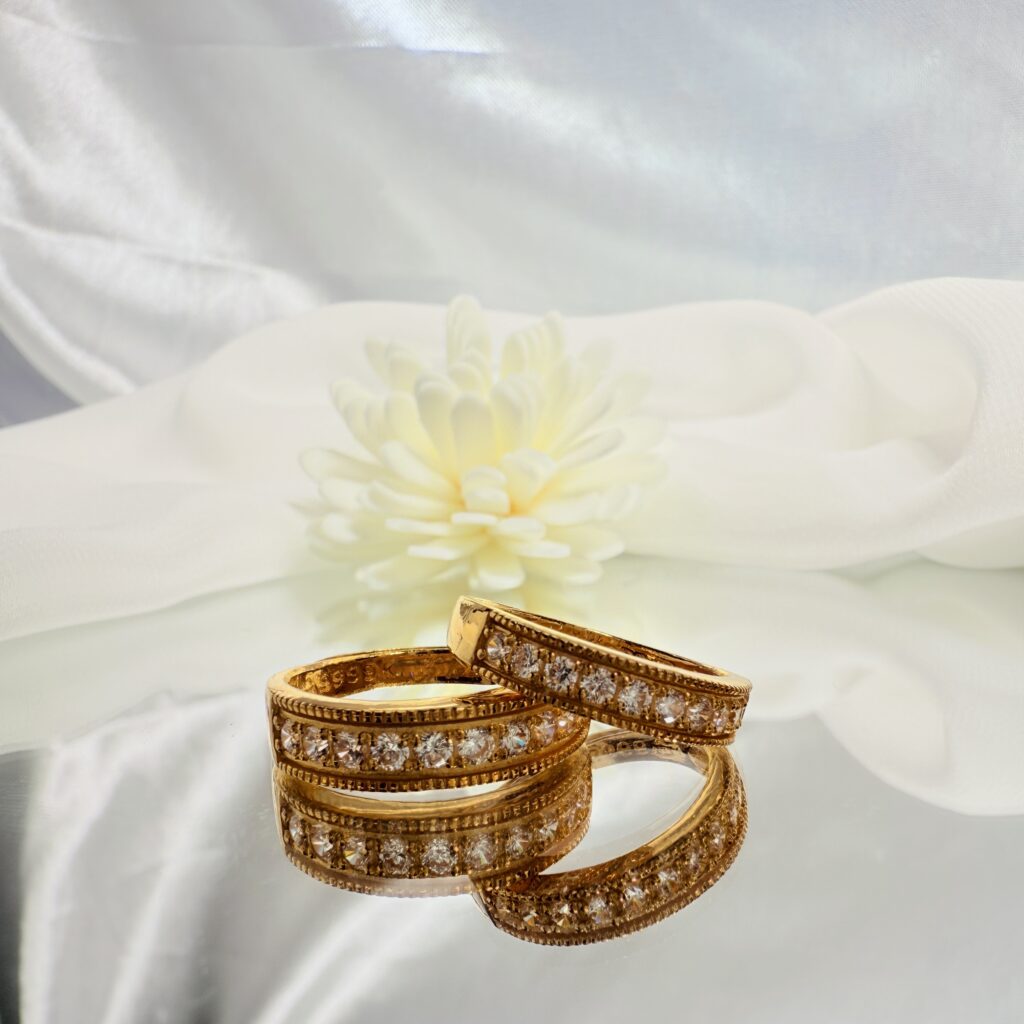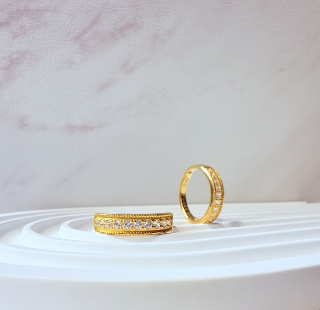 經典排鑽設計黃金戒,璀璨閃耀卻不失優雅,適合男女皆可佩戴。無論是情侶象徵、婚姻承諾,或日常穿搭點綴,皆展現恆久相伴的美好寓意。