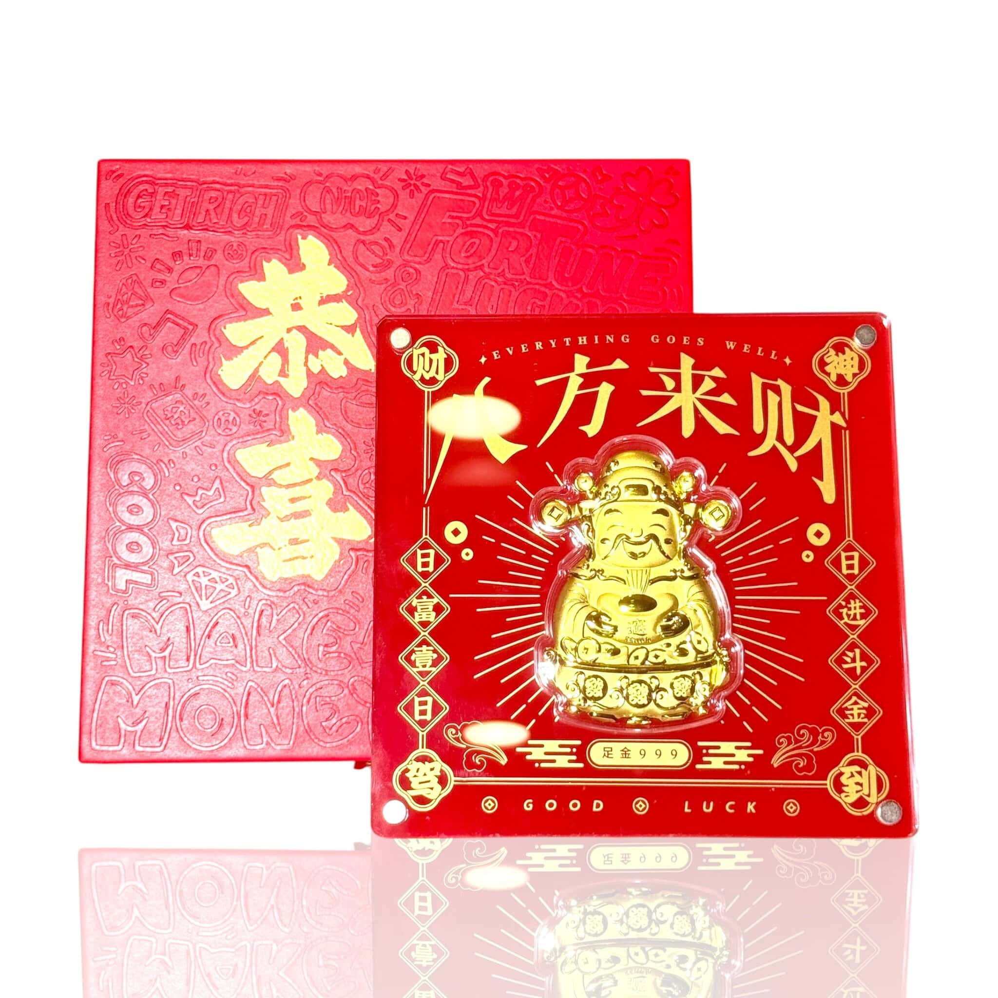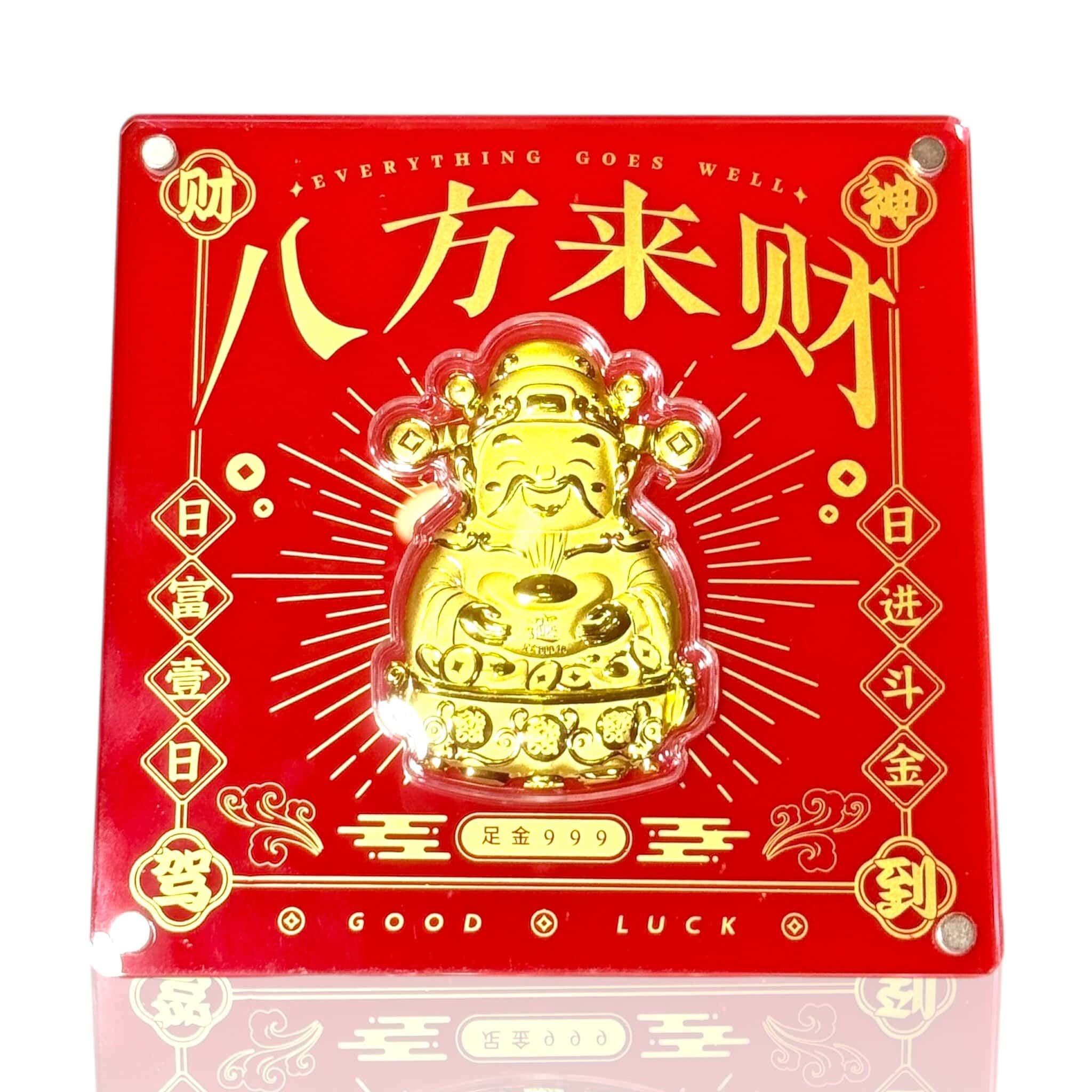 立體財神,配以喜慶大紅牌面,寓意八方來財、日進斗金。可擺放玄關、櫃台與客廳,喬遷開幕、過年送禮體面又招旺運。