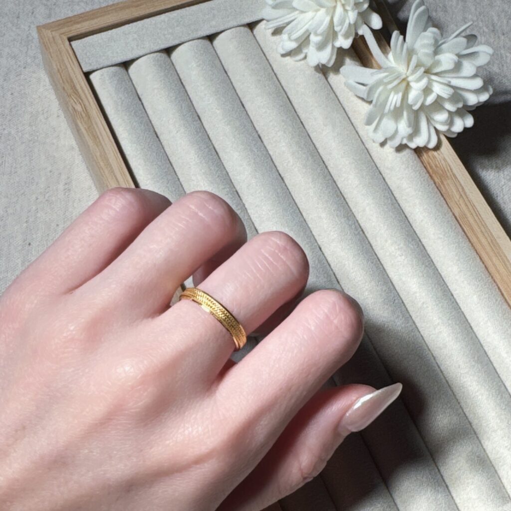 精緻珠點設計的黃金戒指,低調中展現典雅質感,無論日常配戴或重要場合都能完美襯托氣質,簡約卻不失亮眼,是送禮與自用的經典之選。