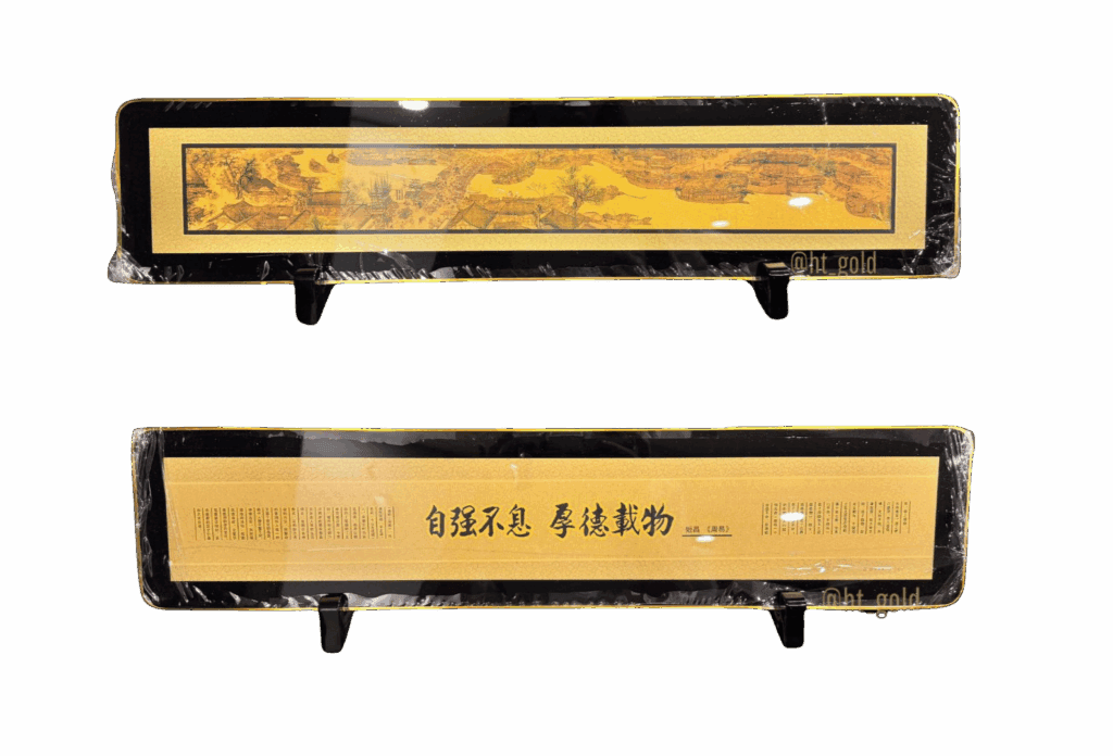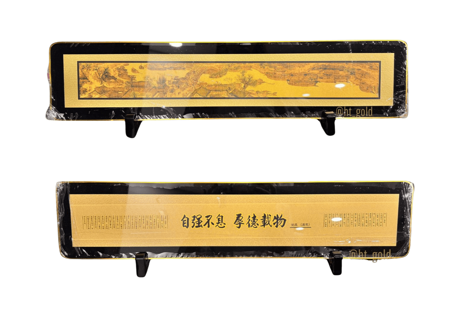 重現經典《清明上河圖》,長幅細節層次分明;背面題「自強不息 厚德載物」寓意滿滿。附展示座,適合客廳/辦公室陳列,收藏送禮皆宜。