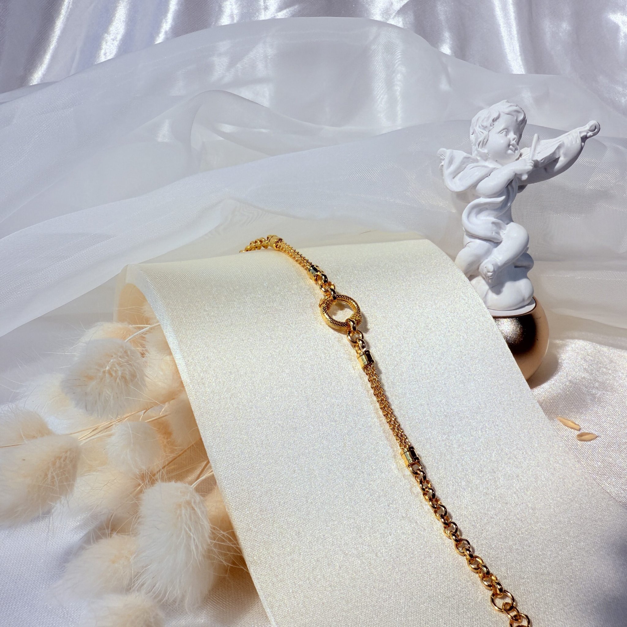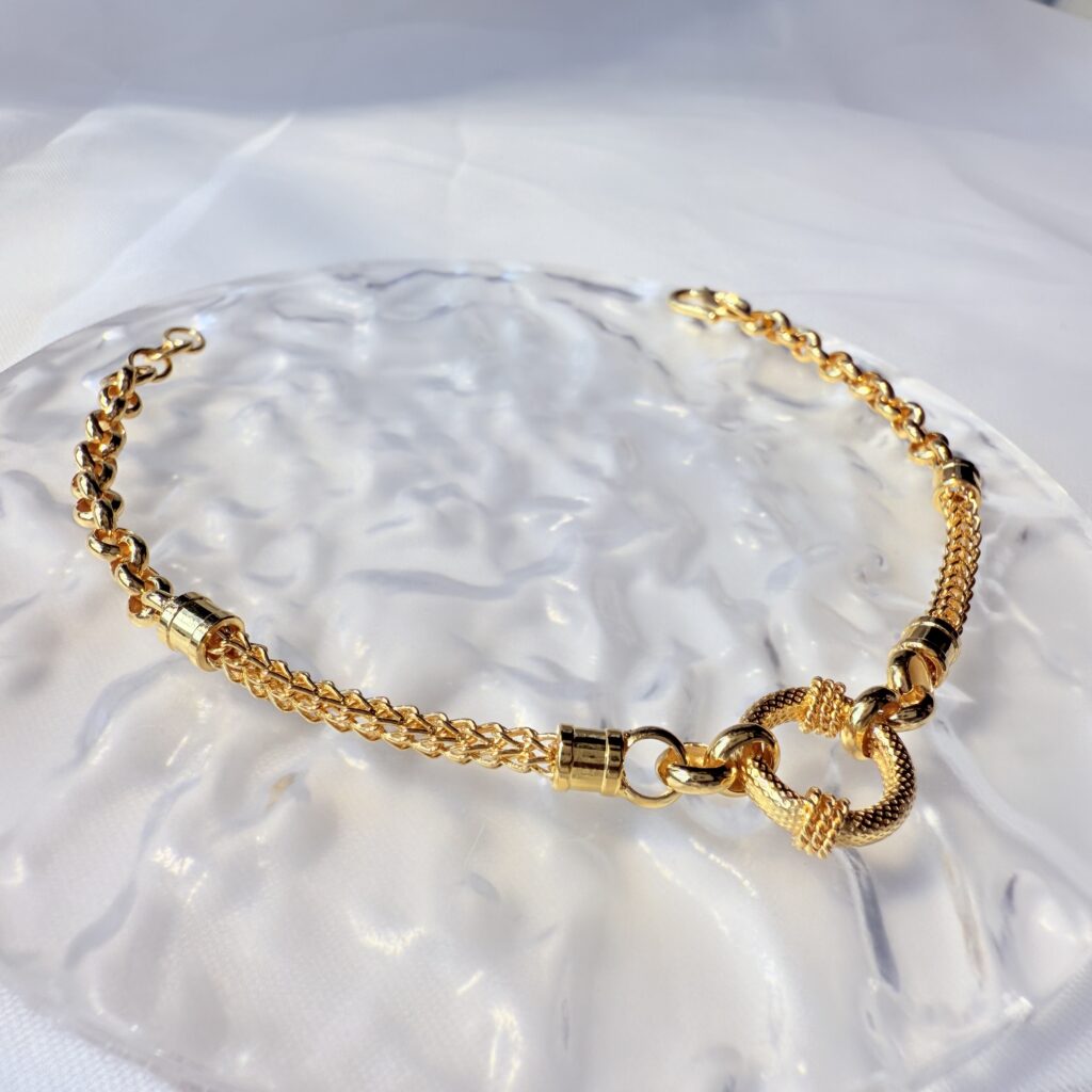 環扣設計寓意圓滿與相守,鏈節細膩俐落,低調中帶有質感光澤。日常佩戴百搭優雅,亦適合作為禮物,象徵永恆連結與專屬心意。