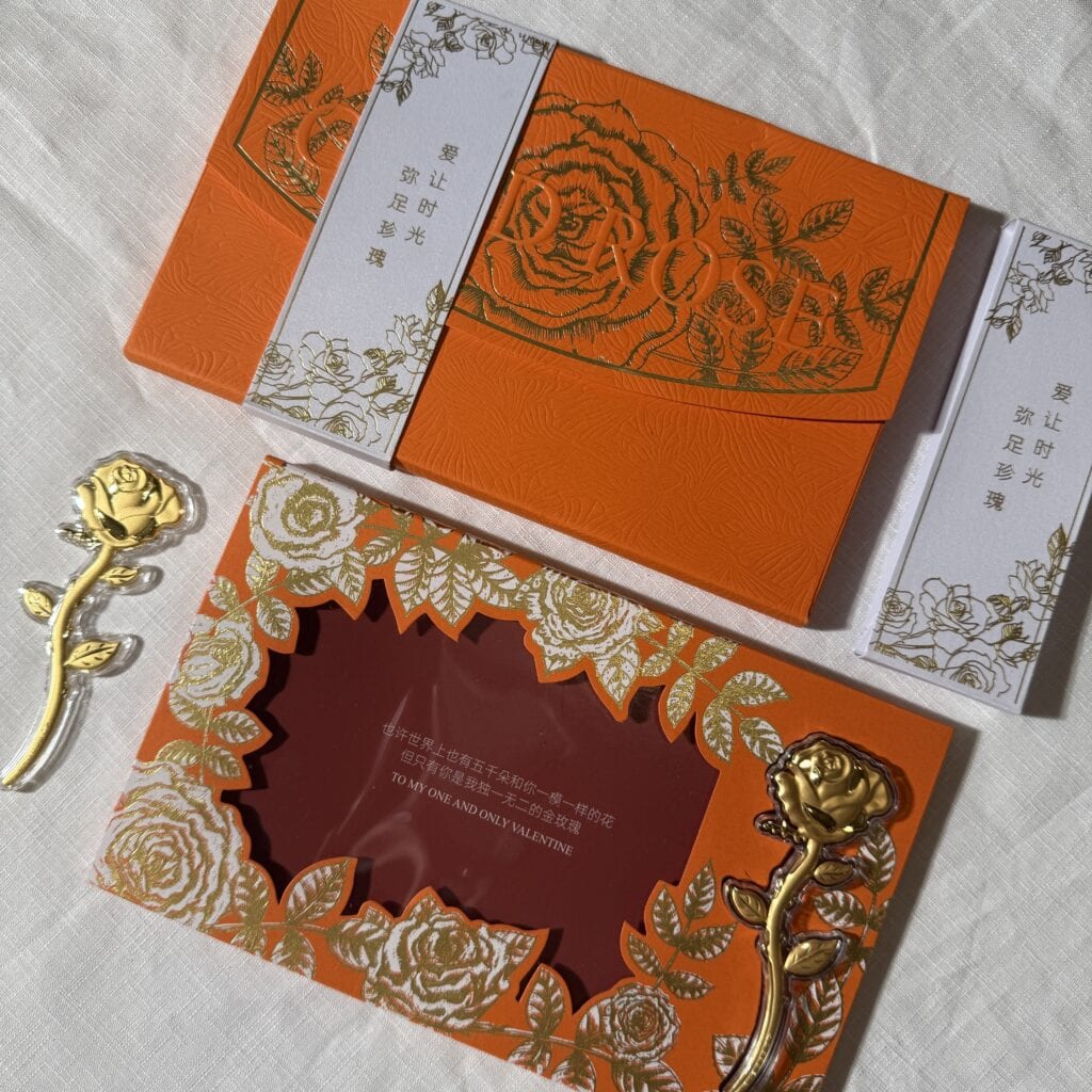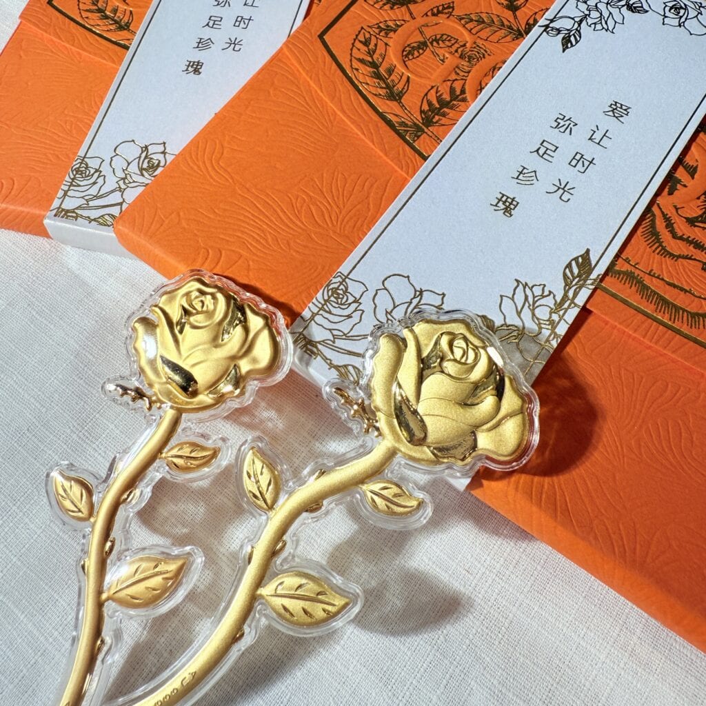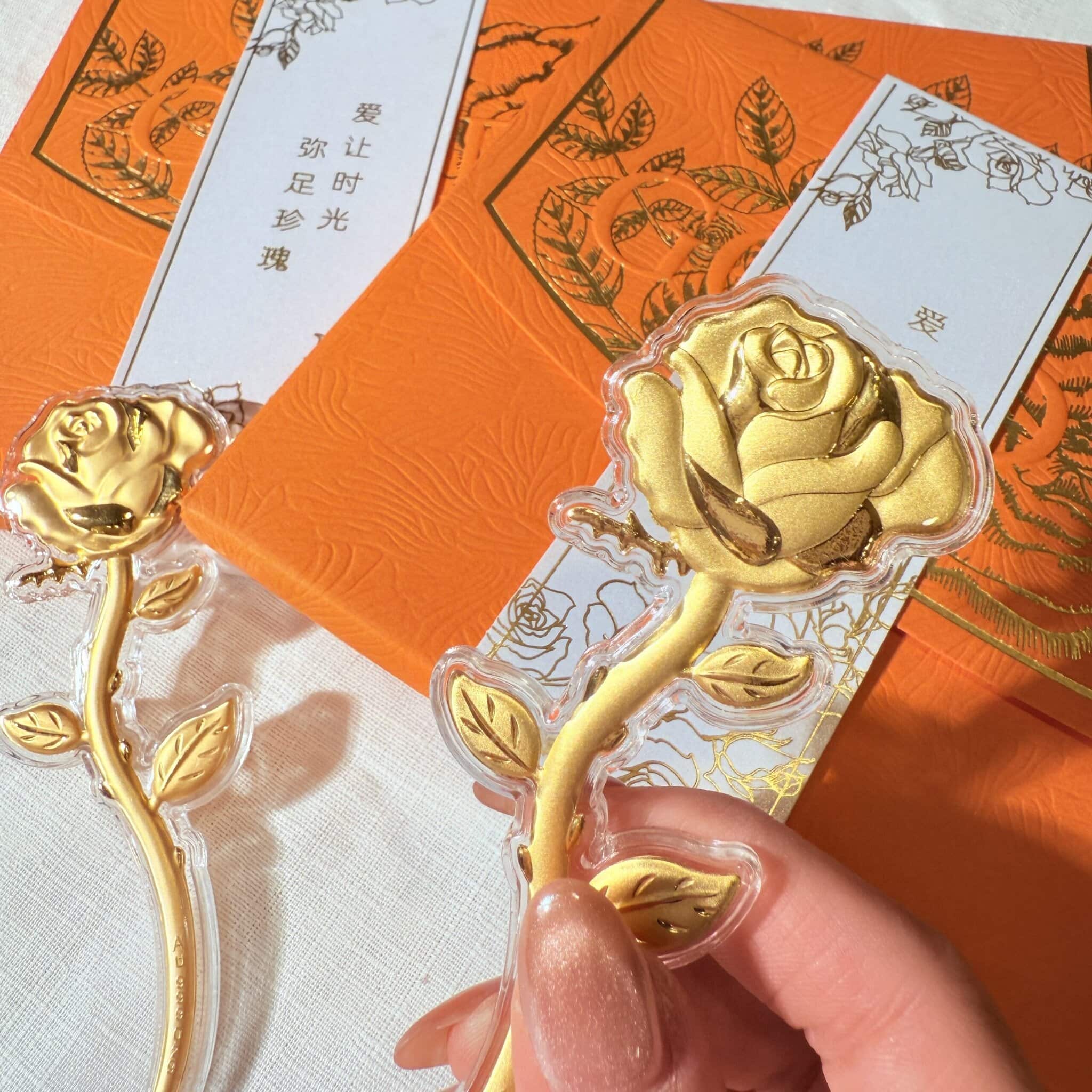 金箔玫瑰祝福禮盒,以立體金玫瑰書籤搭配壓紋信封與鏤空花框卡片,呼應「愛讓時光彌足珍貴」的主題。溫柔漸層配色與質感外盒,呈現收藏級儀式感;適合告白、生日、周年紀念、情人節與婚禮小物,送禮自用皆宜,長久典藏。關鍵詞:金箔玫瑰、書籤、祝福、禮盒、告白、情人節。