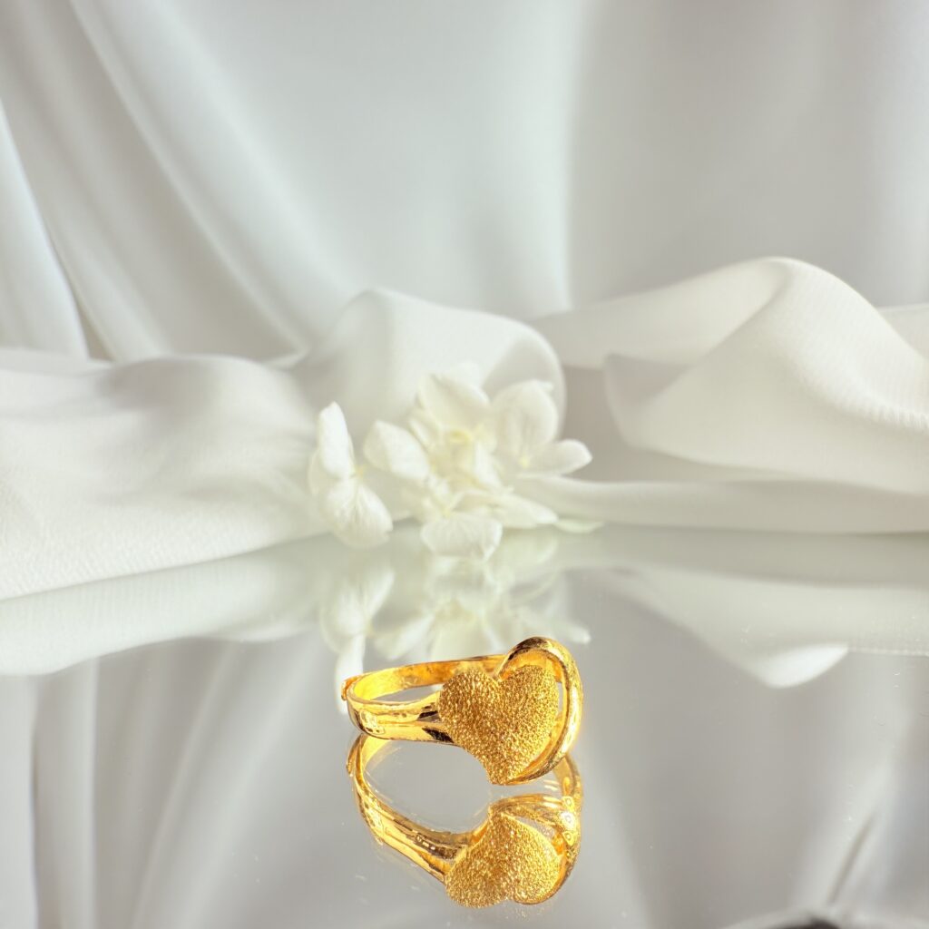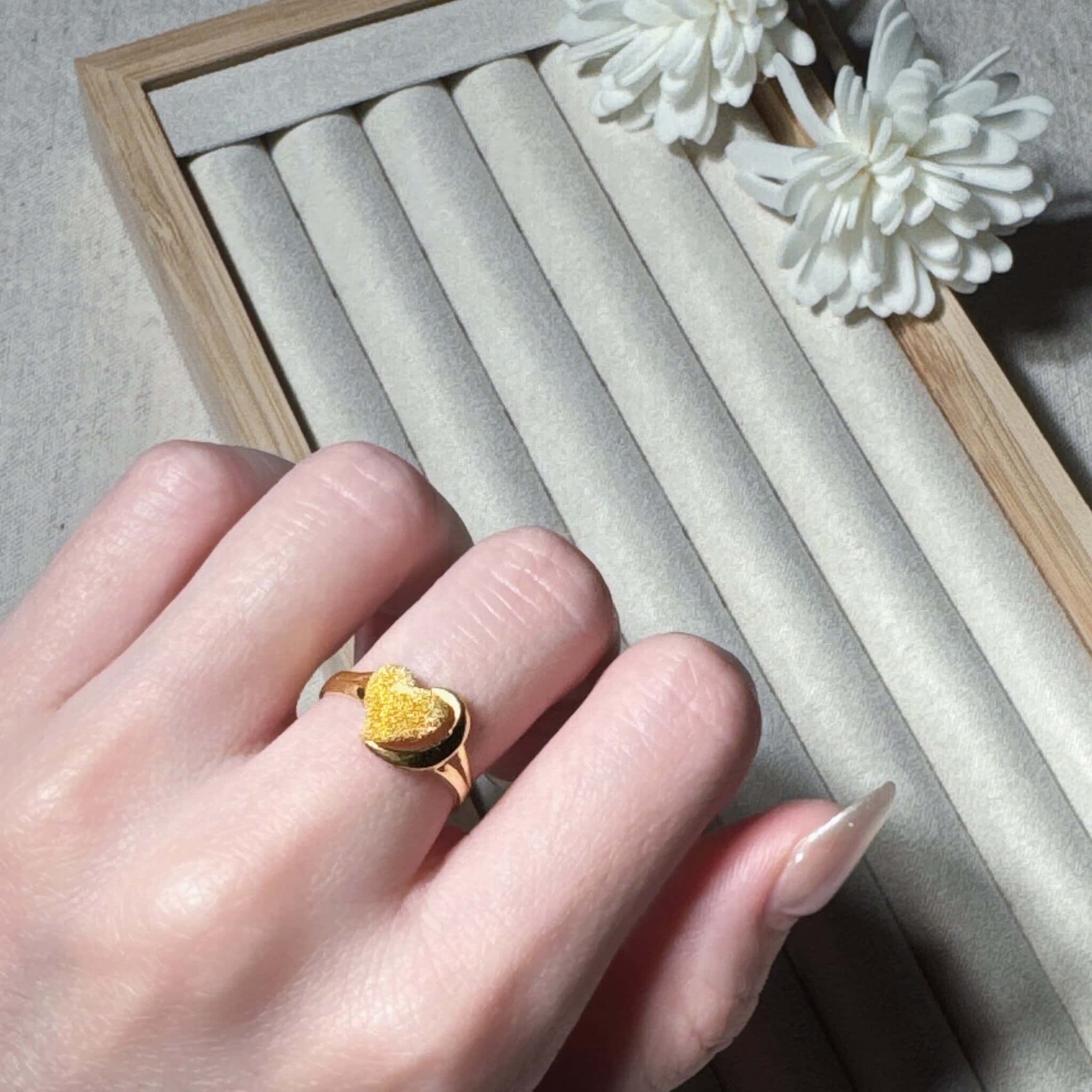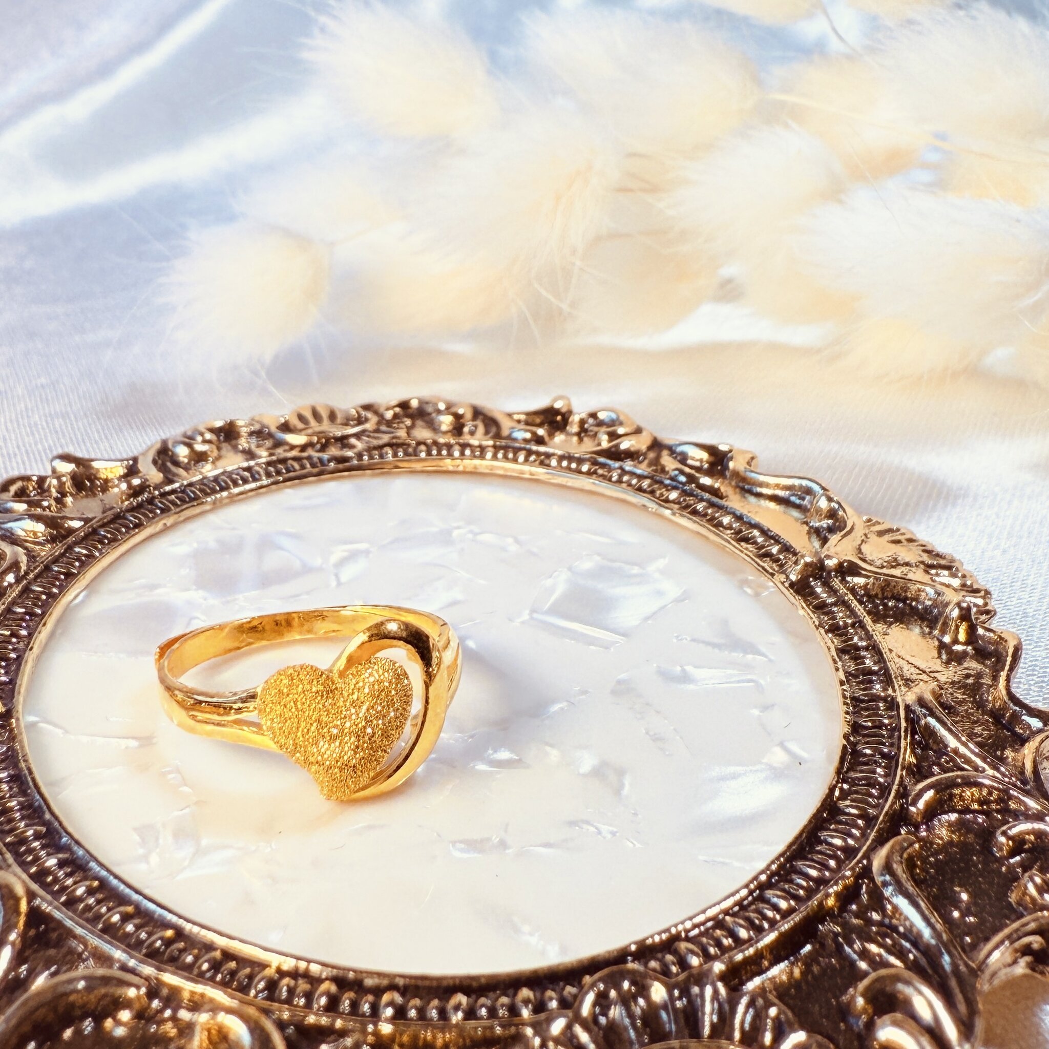 愛心造型純金戒指,閃耀砂面工藝,象徵愛與守護。甜美設計兼具日常與浪漫,適合送禮或自戴,展現真摯心意與質感。