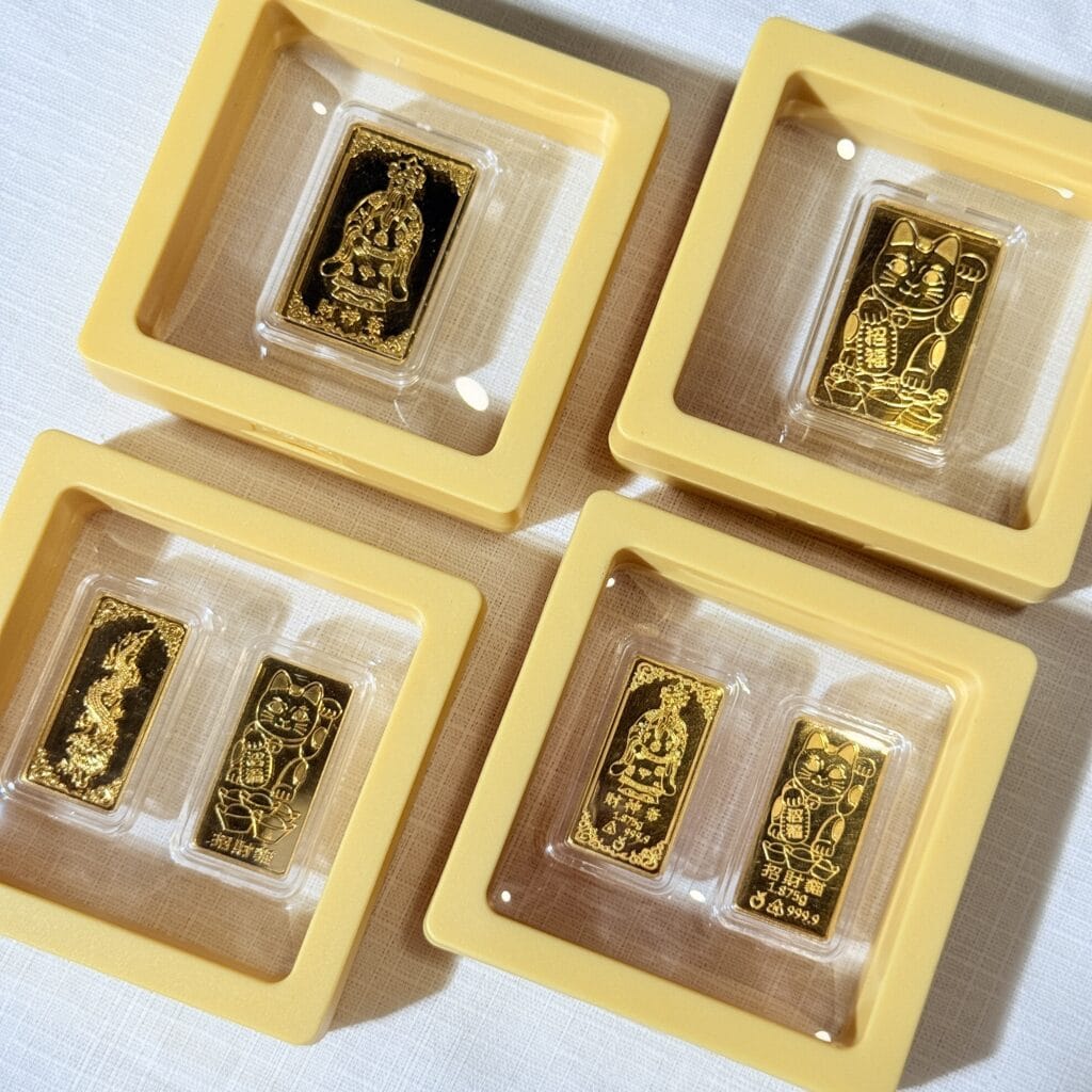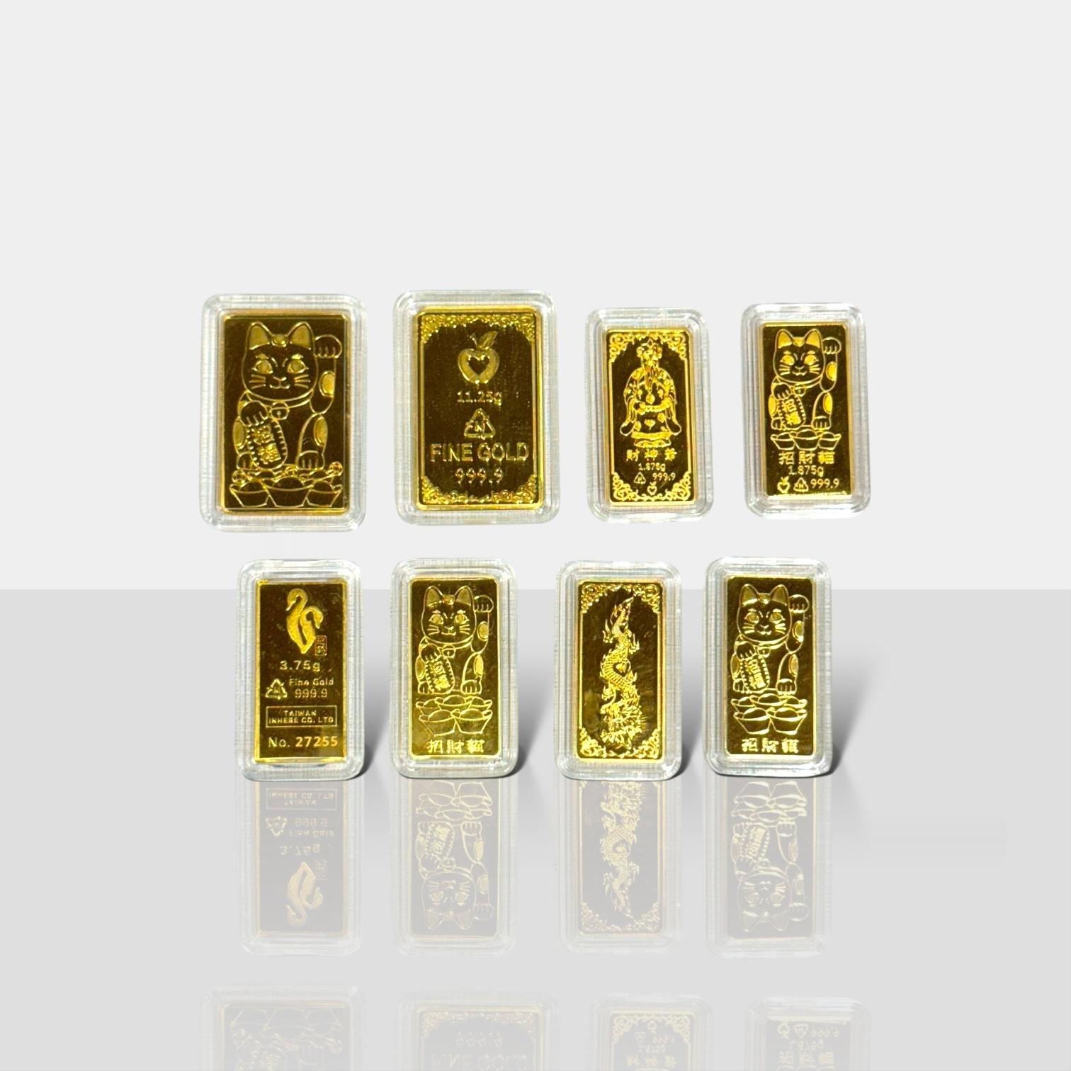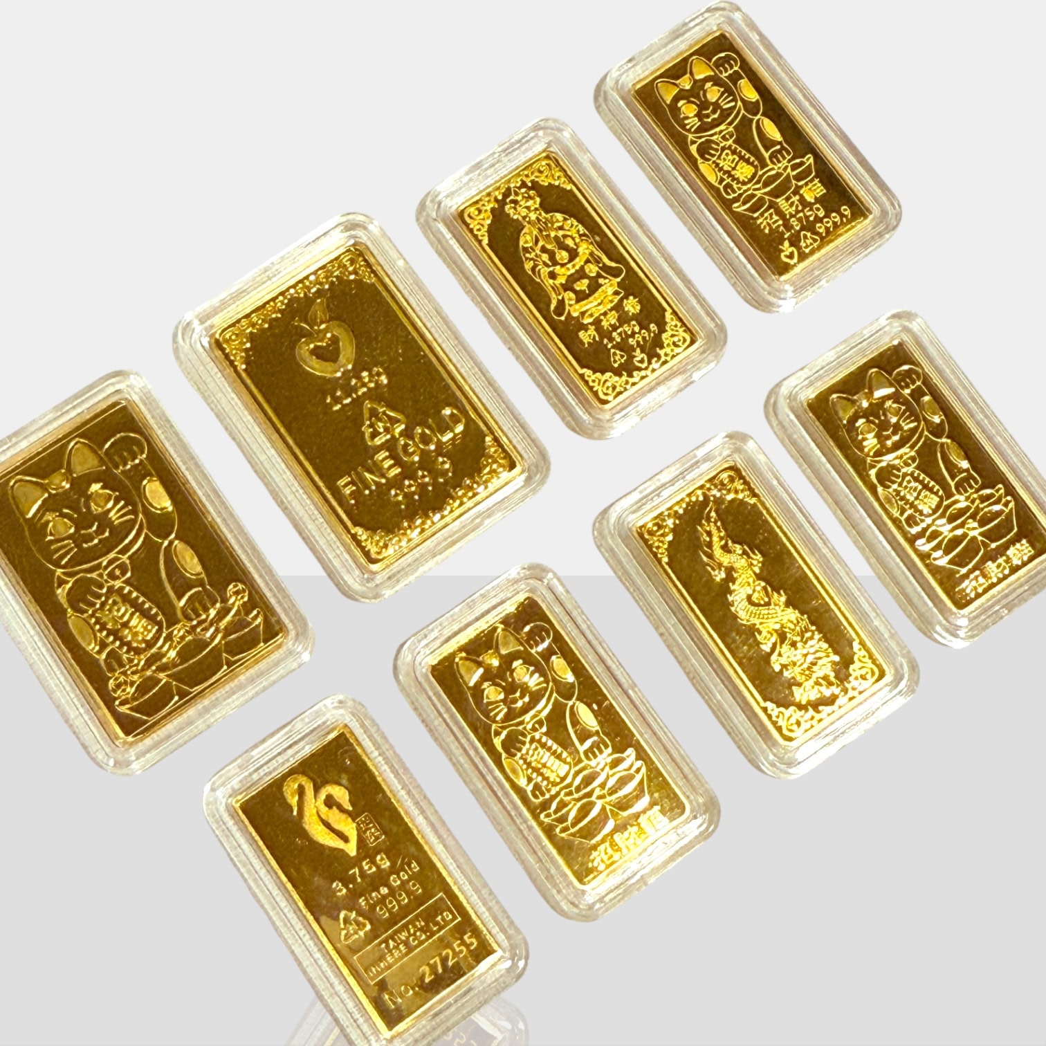 招財貓、財神、喜鵲、祥龍等吉祥圖騰,尺寸輕巧好收藏,兼具禮贈與保值性。台中太平門市與線上客服皆可諮詢,安心入手開運純金。