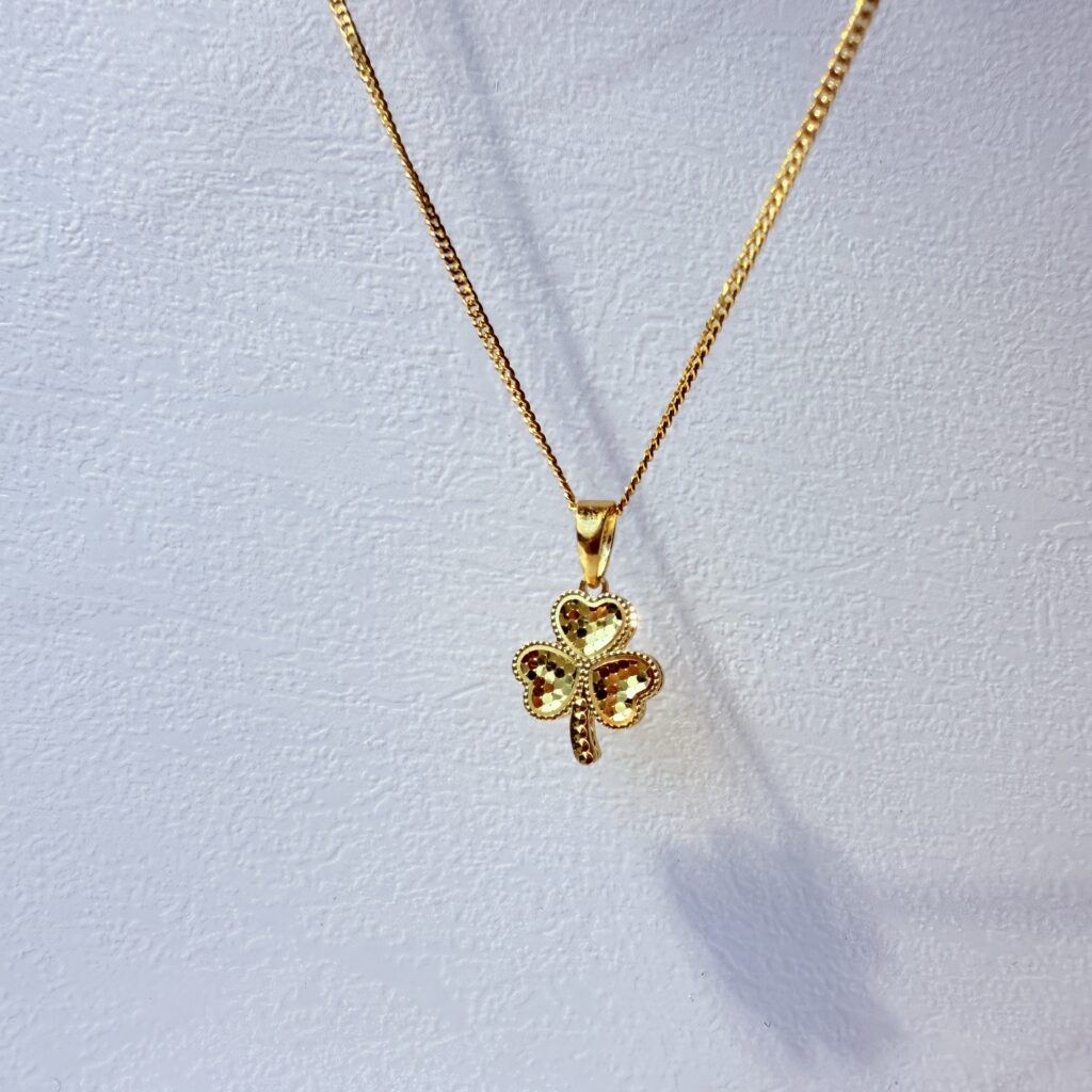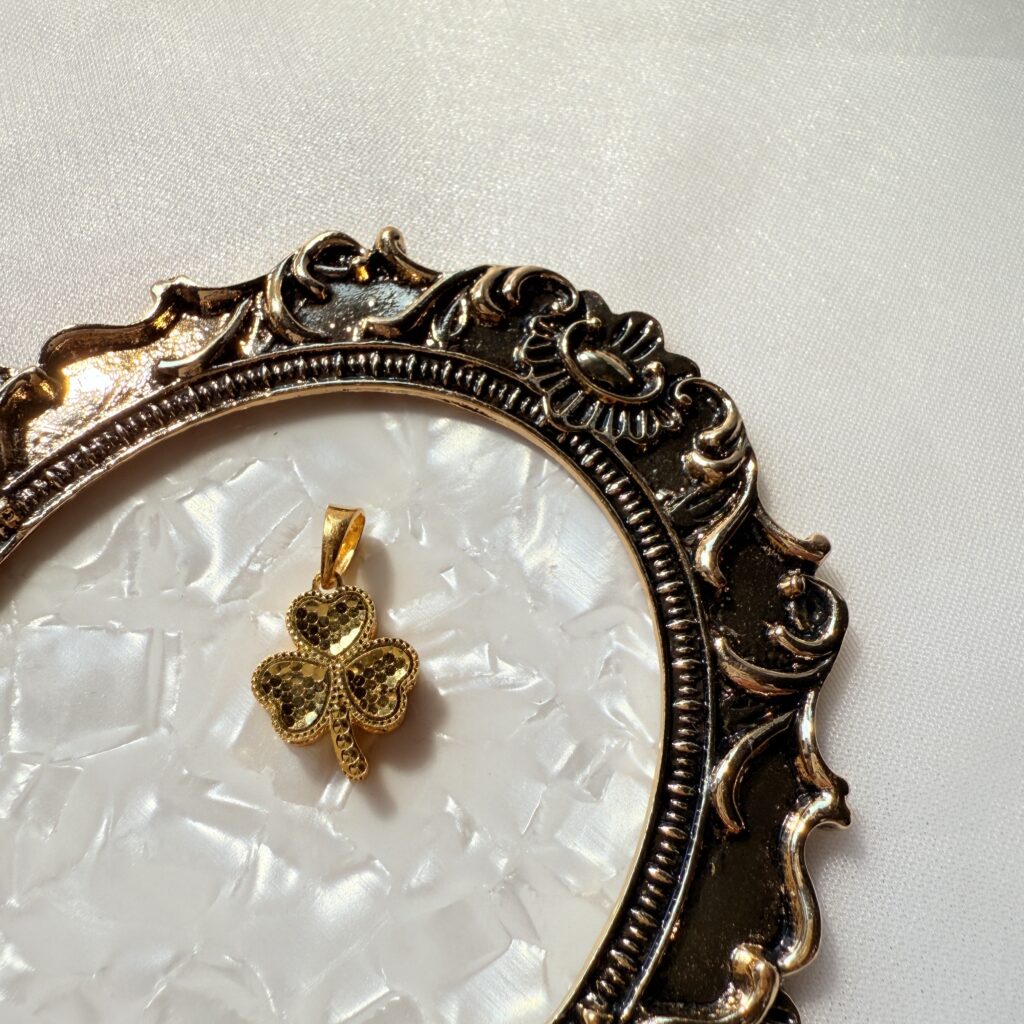 24K黃金雕琢三葉草造型,立體切割面閃耀微光,星漾三葉墜寓意希望、愛與幸運,典雅百搭,適合送禮與日常佩戴。