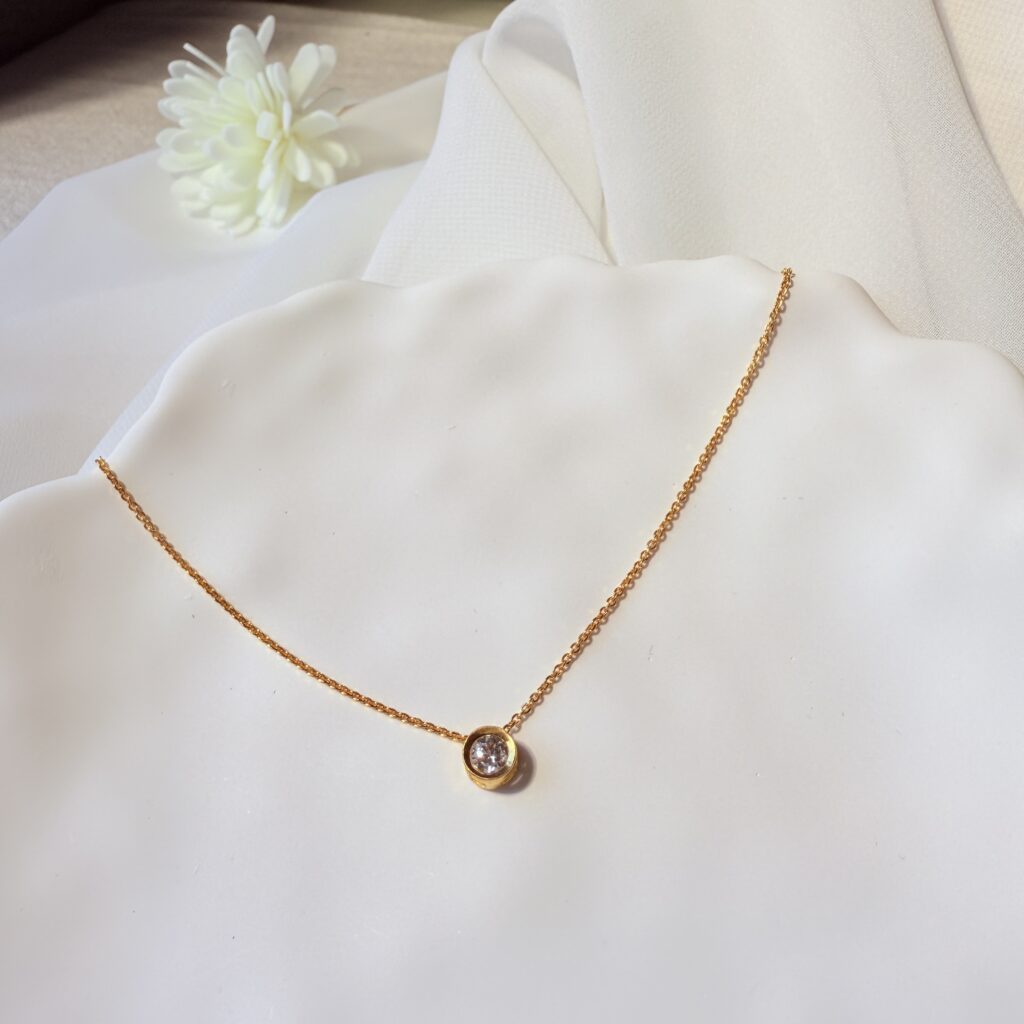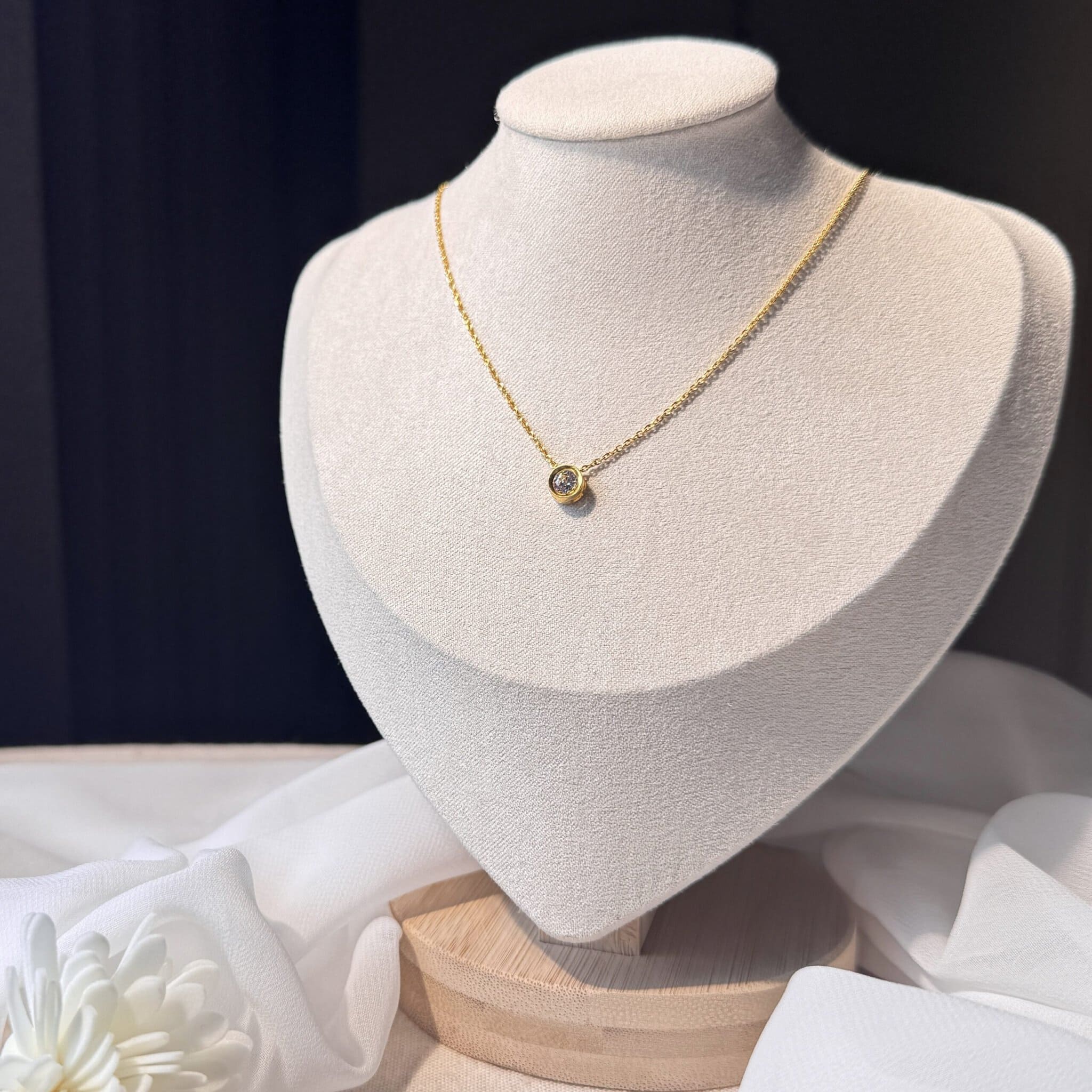 星鑽微光項鍊以純金搭配單鑽設計,簡約而不失優雅,勾勒出日常也能輕鬆駕馭的質感光芒。無論是日常穿搭或送禮心意,都是展現真摯情感的最佳選擇。