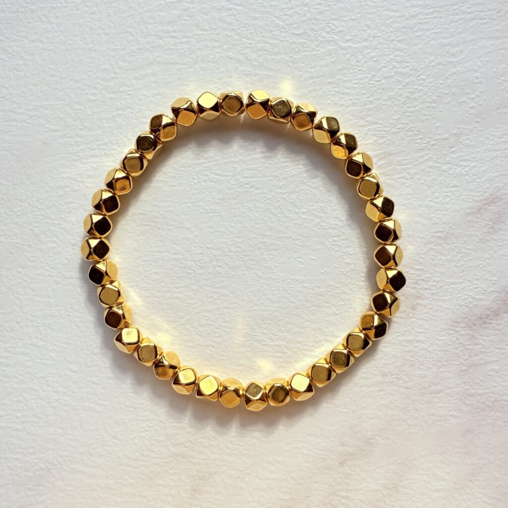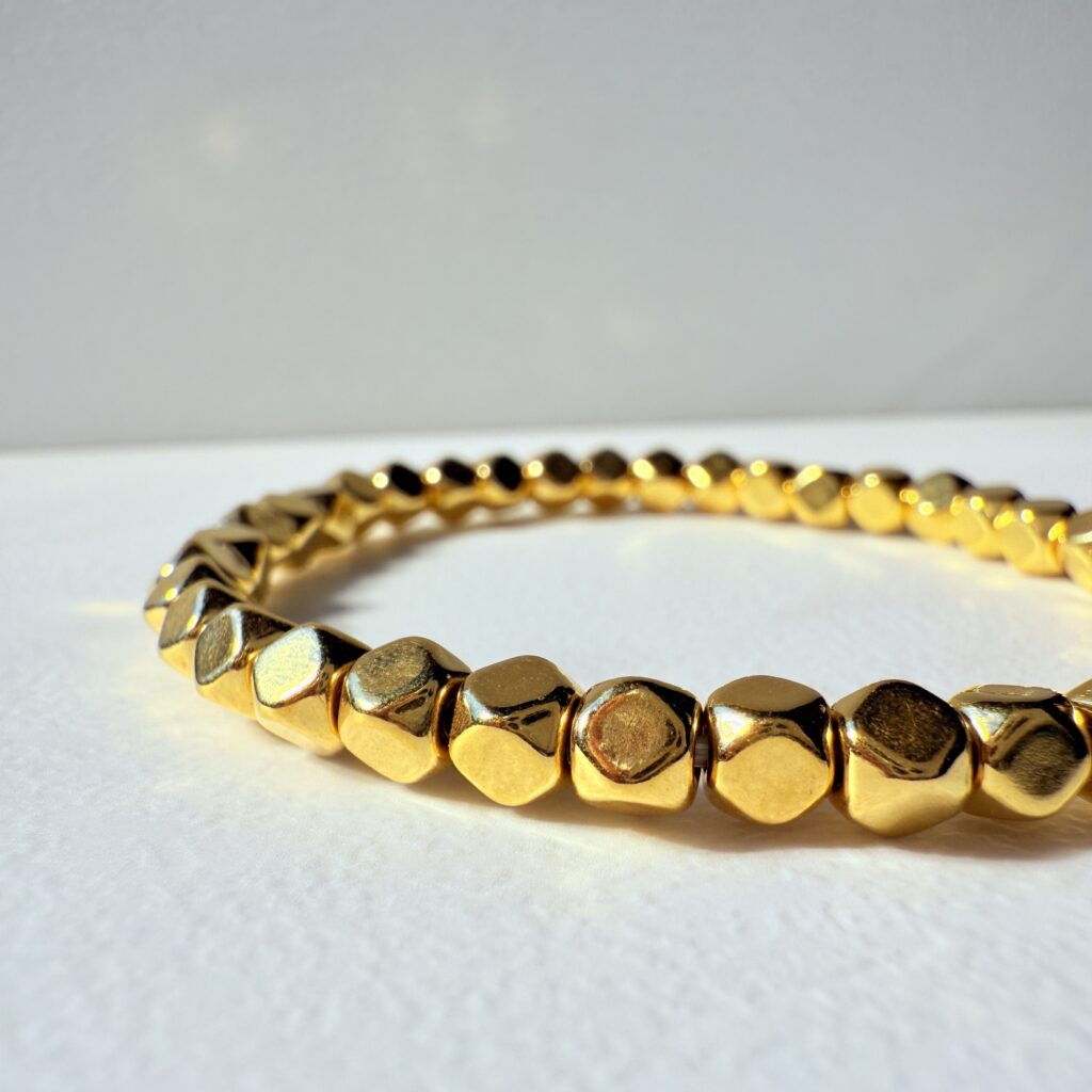 多面切角金珠串成的簡約黃金手鍊,鏡面反射帶出細緻光影;圓潤貼手、單戴或疊戴皆俐落耐看,9999 純金質感穩重。