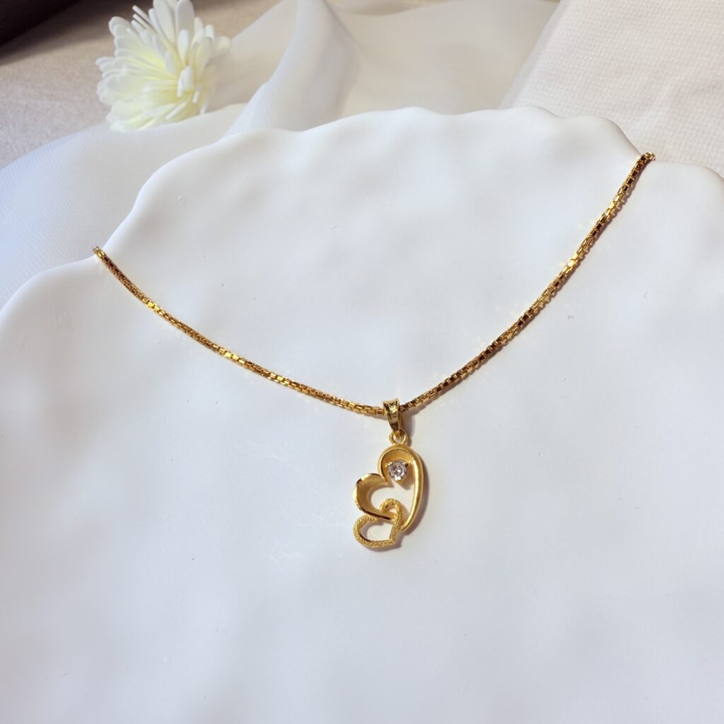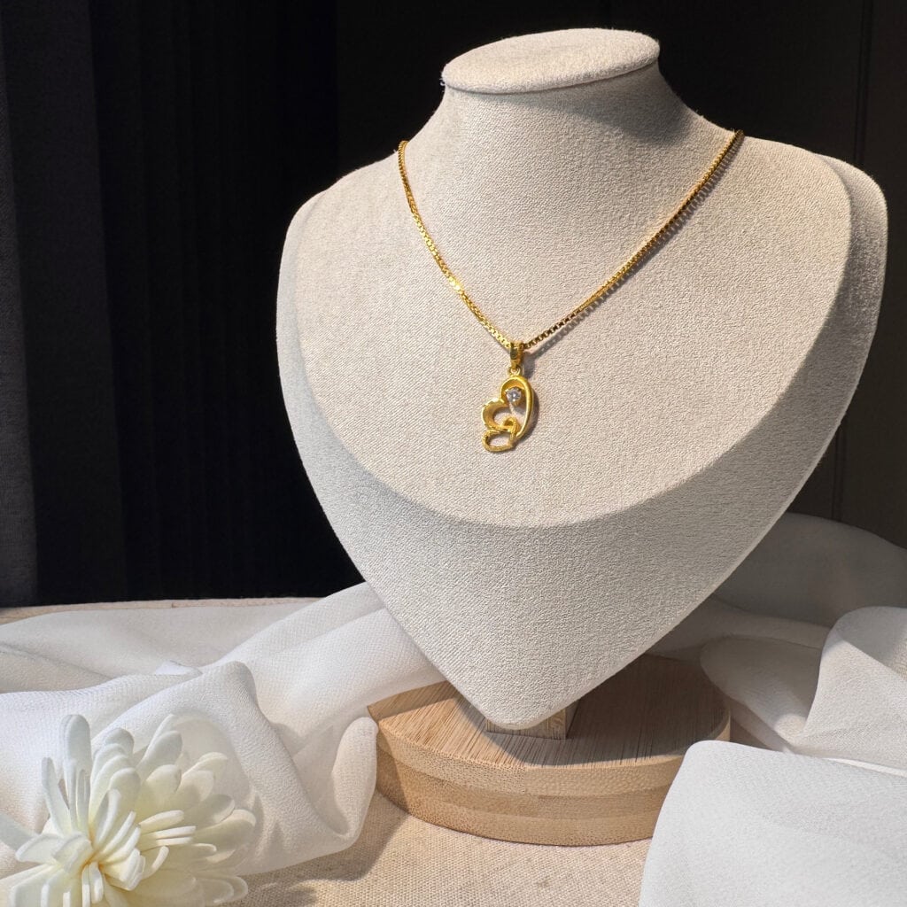 心戀相依黃金項鍊,雙心交疊設計象徵守護與愛戀,中間點綴水晶光澤,璀璨卻不張揚。無論是情人禮物或日常佩戴,都能展現溫柔與浪漫的專屬心意。