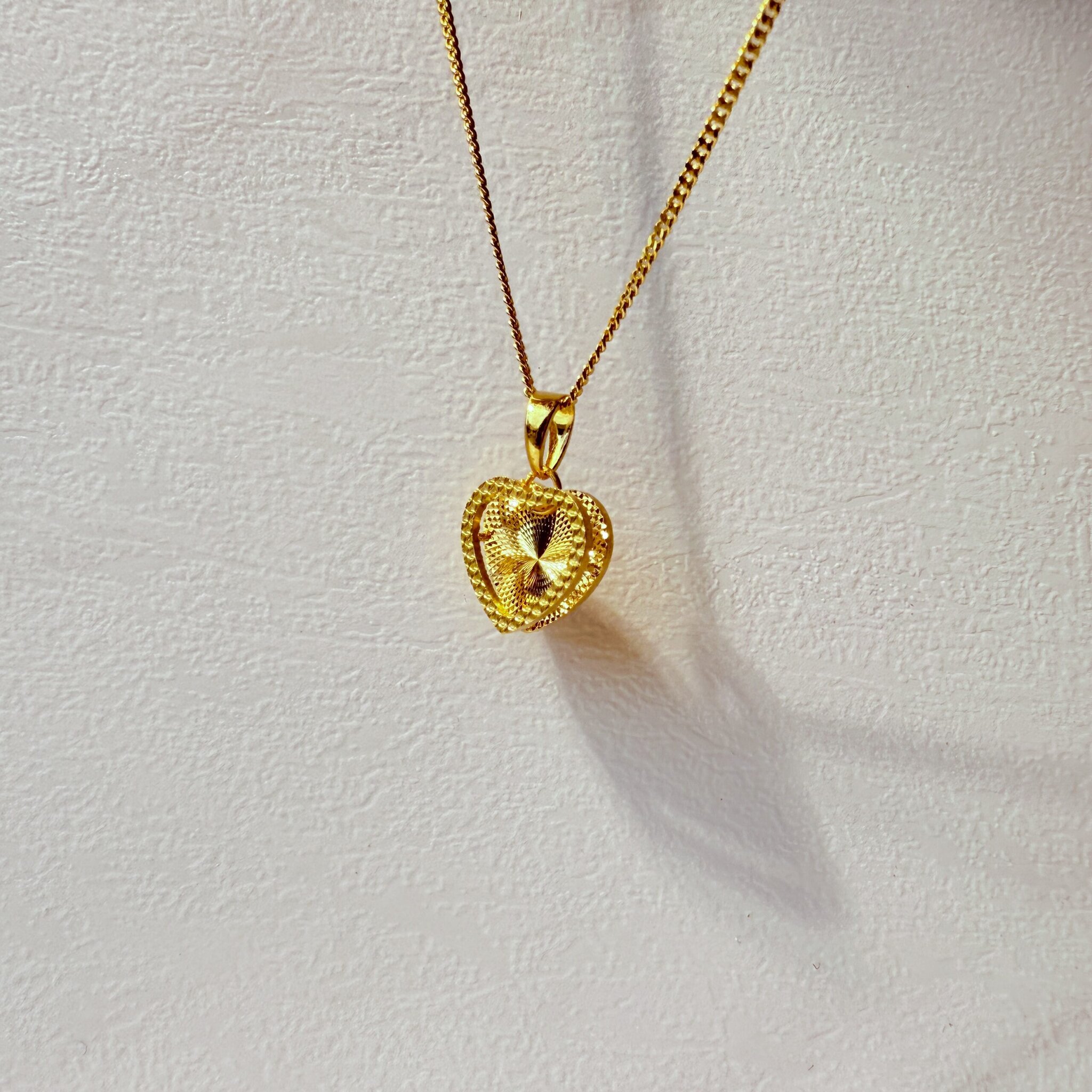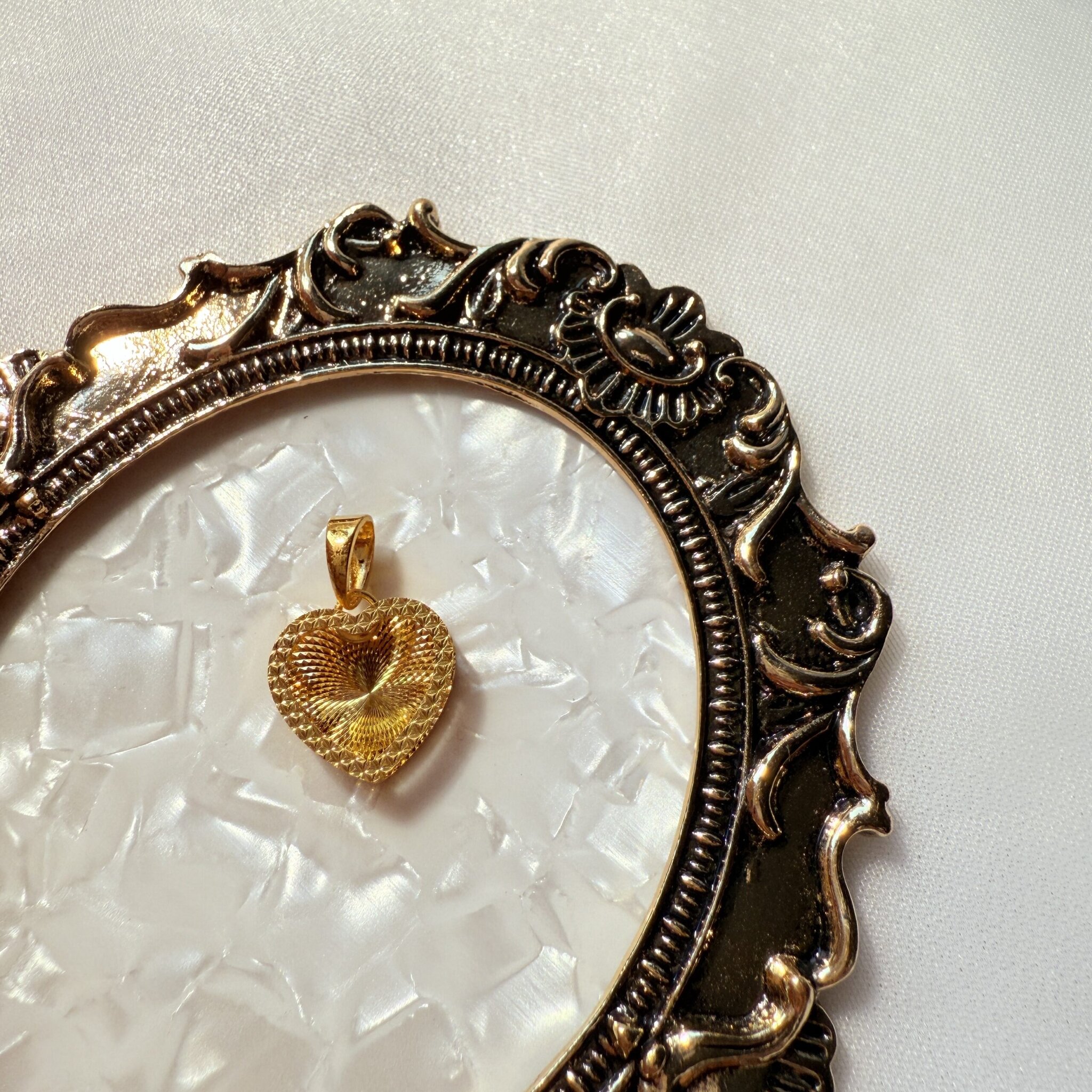 24K黃金打造,細膩雕刻紋理映照微光,晨曦映心墜溫柔且耐看,適合送禮與日常配戴,傳遞真摯情感。