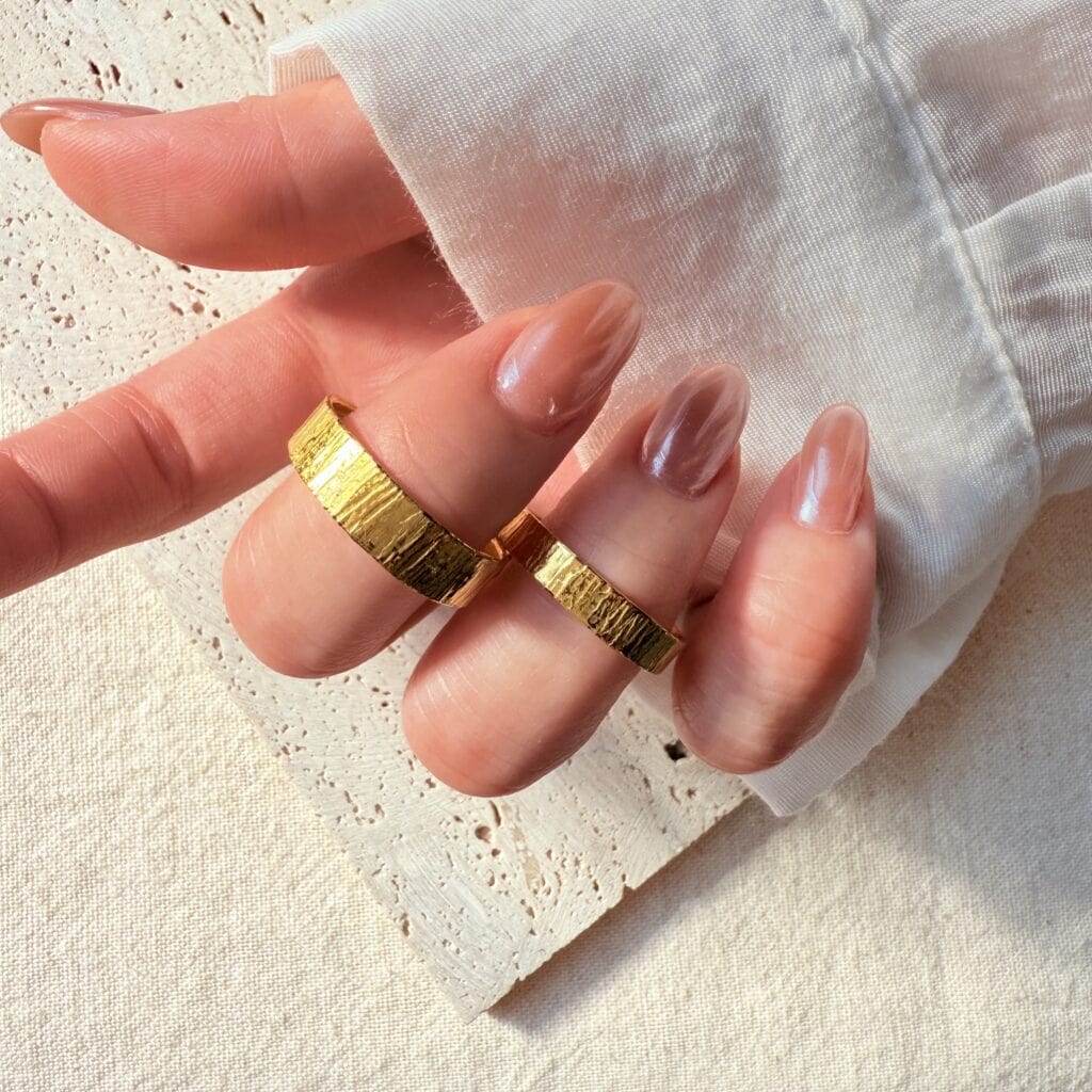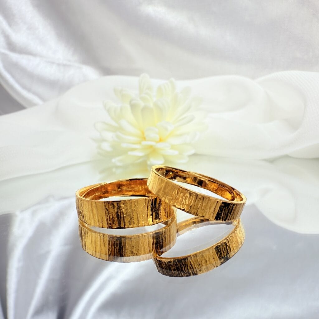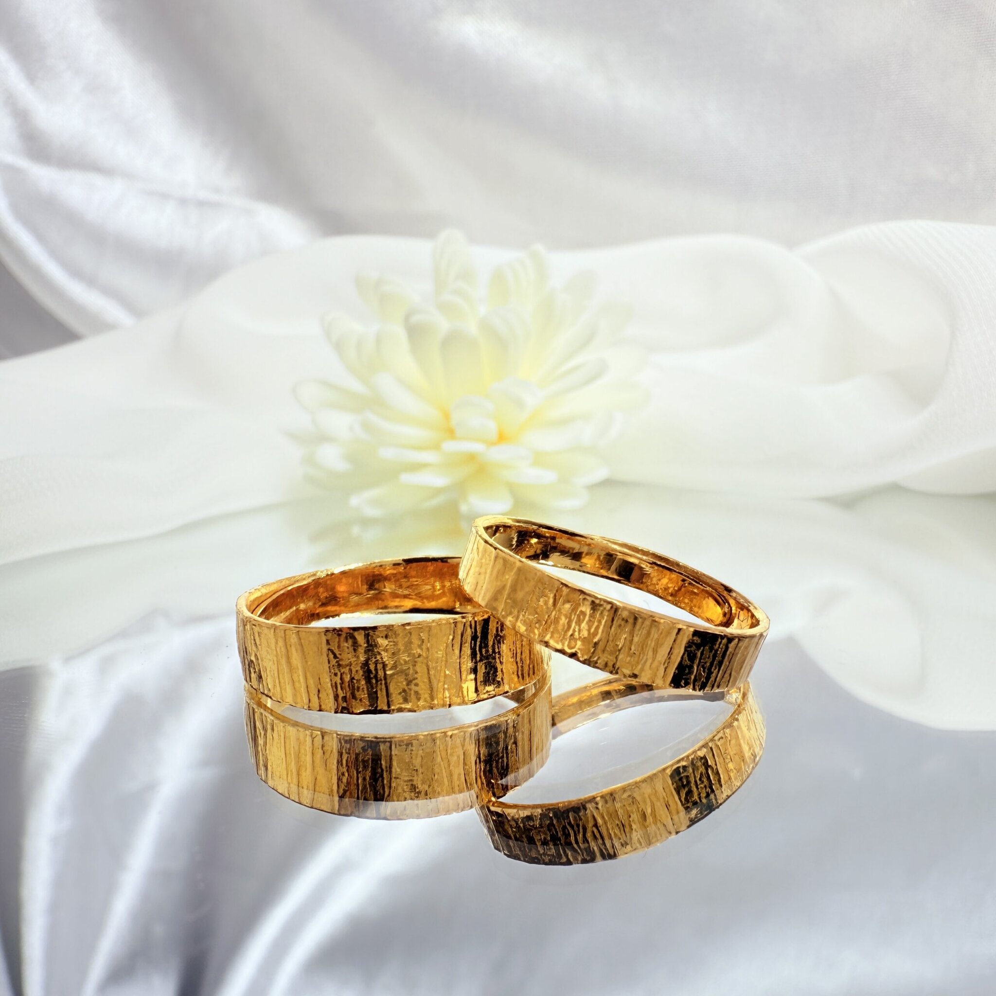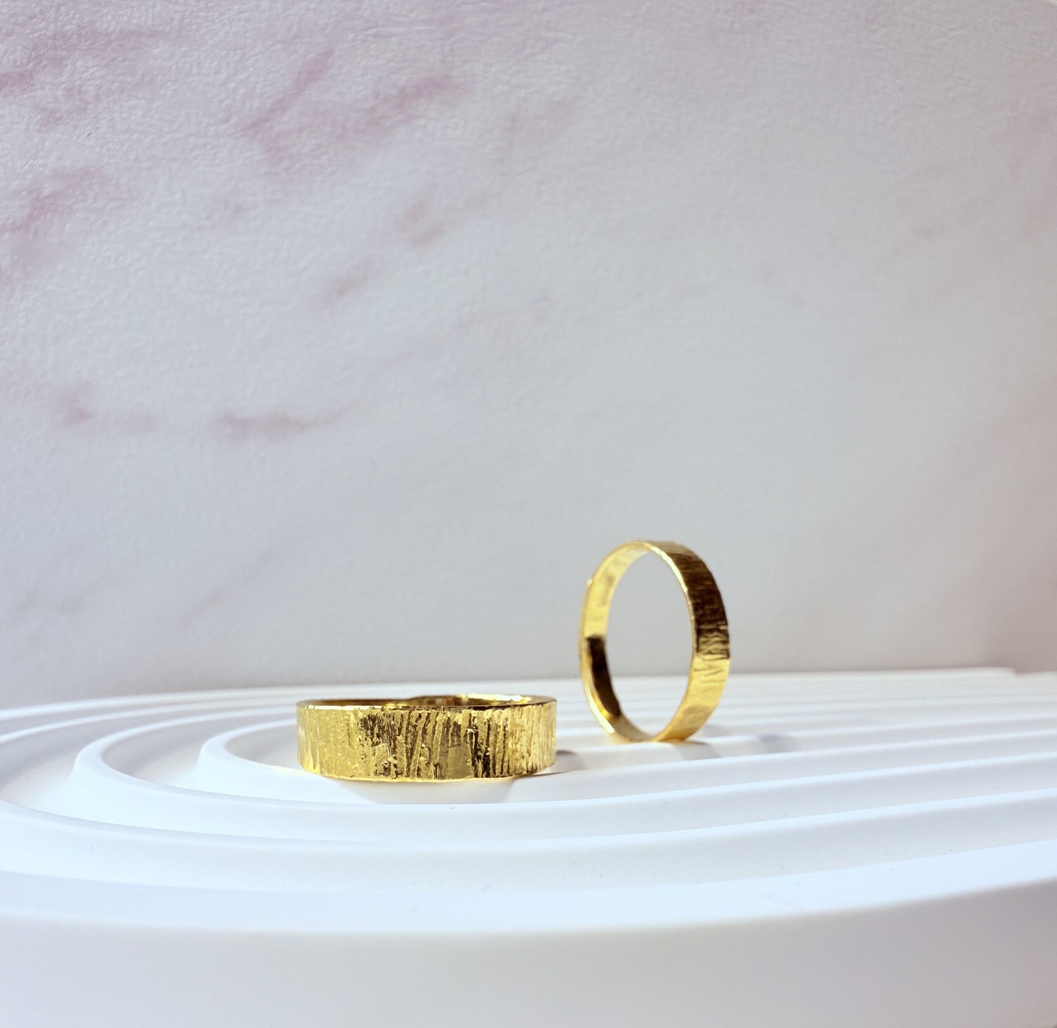 木紋光影戒指,純金打造自然拉絲紋理,展現溫潤樸實的設計美感。適合情侶、夫妻日常佩戴,低調卻不失質感,象徵恆久與穩定的愛。