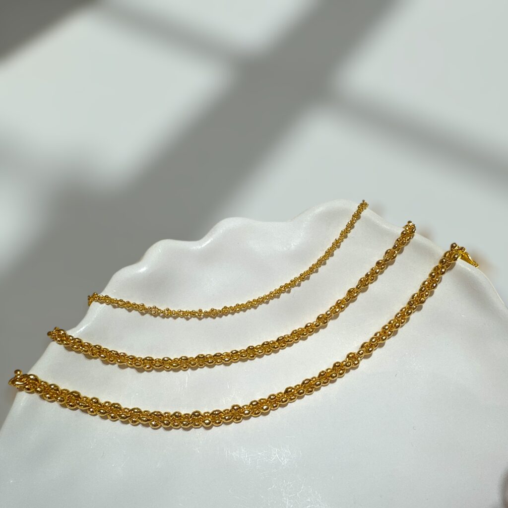 細緻扭繩鍊搭配小米珠間隔設