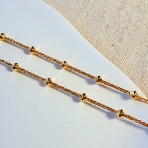 以細緻亮刻紋路打造輕盈光澤感,呈現低調卻耐看的黃金鏈條質感。單戴柔美、搭配墜飾更顯精緻,是日常百搭的經典細鍊款。