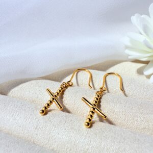 黃金十字耳環以細緻珠串設計