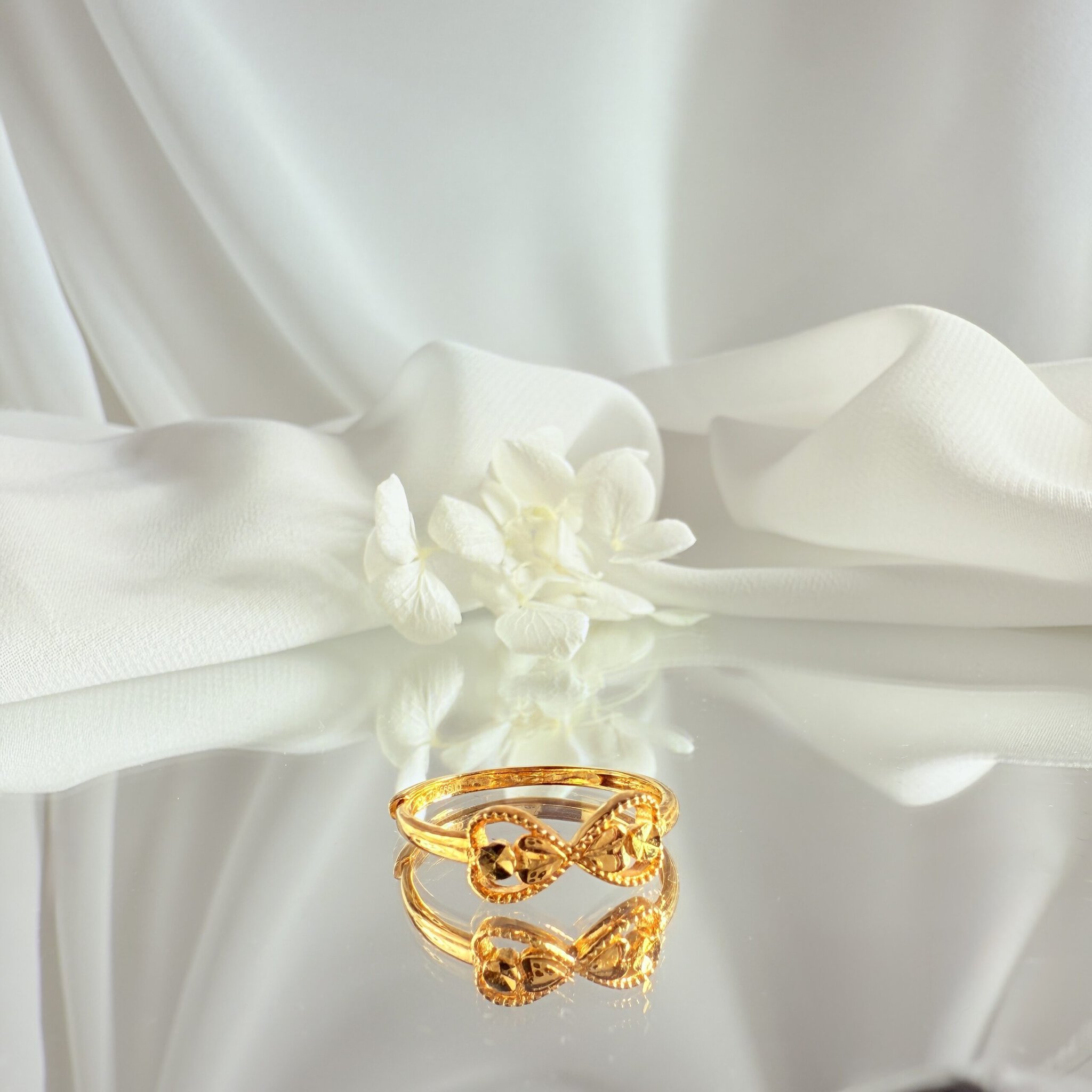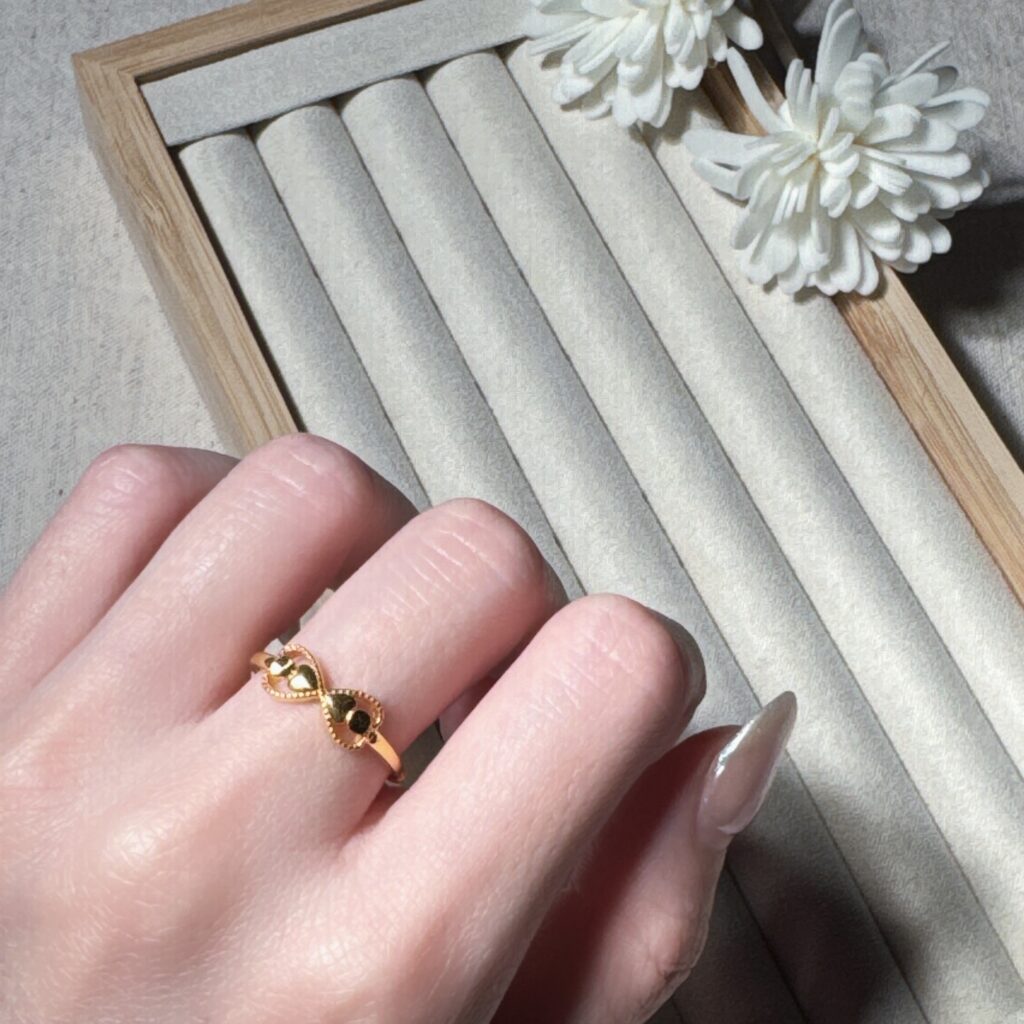 蝴蝶結般的優雅線條,交織出浪漫與甜美氛圍。這款黃金戒指不僅是精緻飾品,更象徵心與心的緊緊相繫,日常配戴展現溫柔格調,也適合作為愛的禮物。