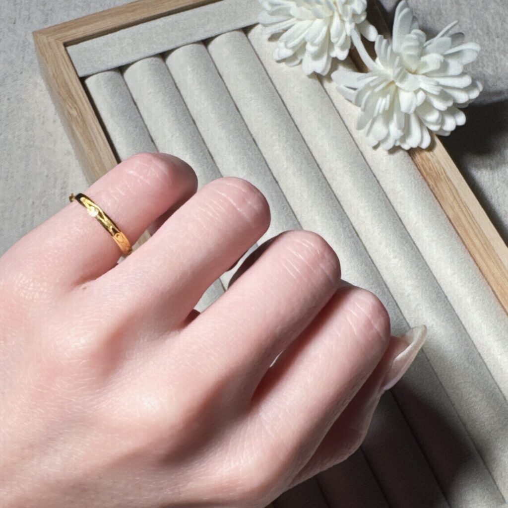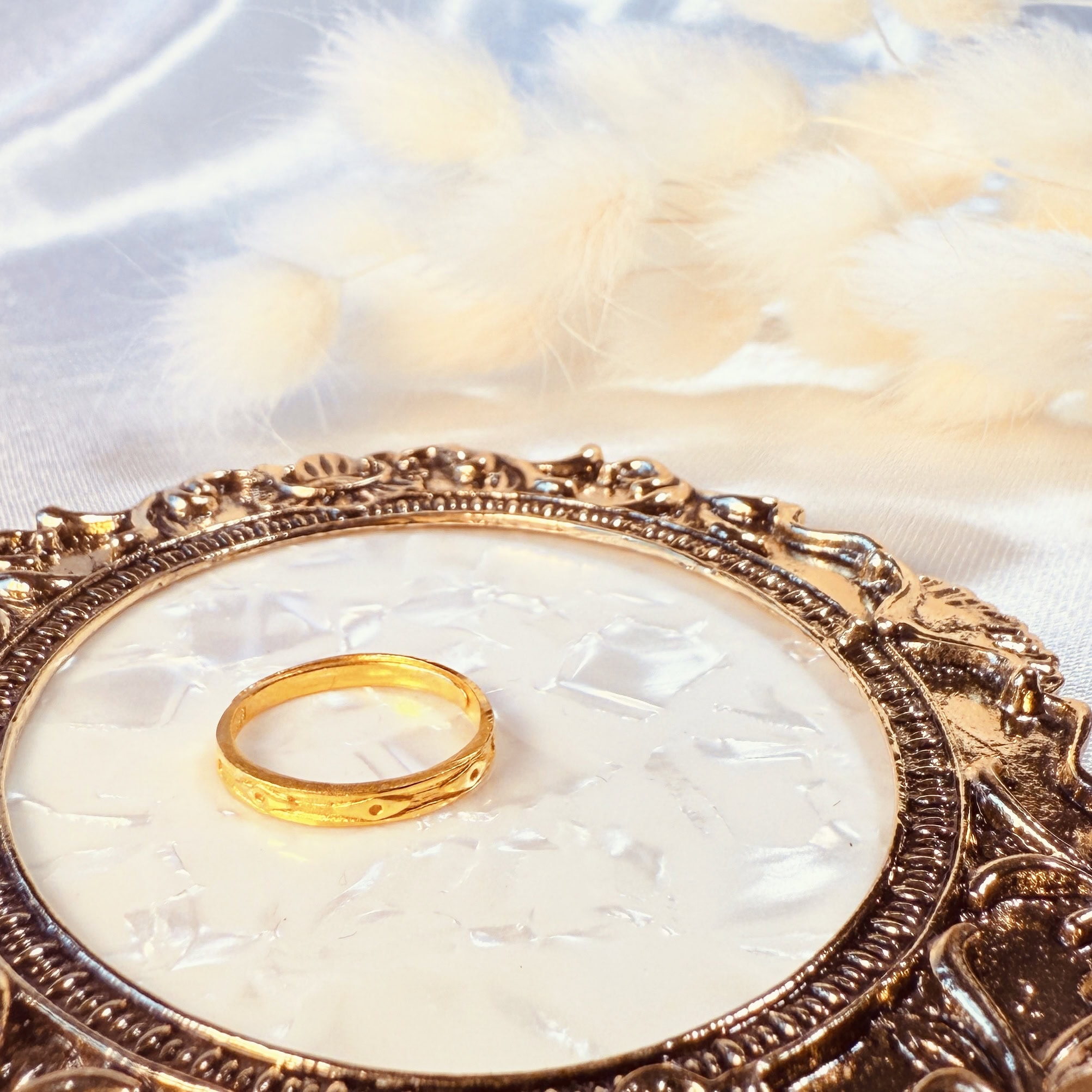 浪漫細緻的黃金雕刻戒指,簡約卻充滿獨特韻味。低調的光澤與柔美線條,完美展現日常百搭的質感魅力,為妳的每一刻增添優雅心動。
