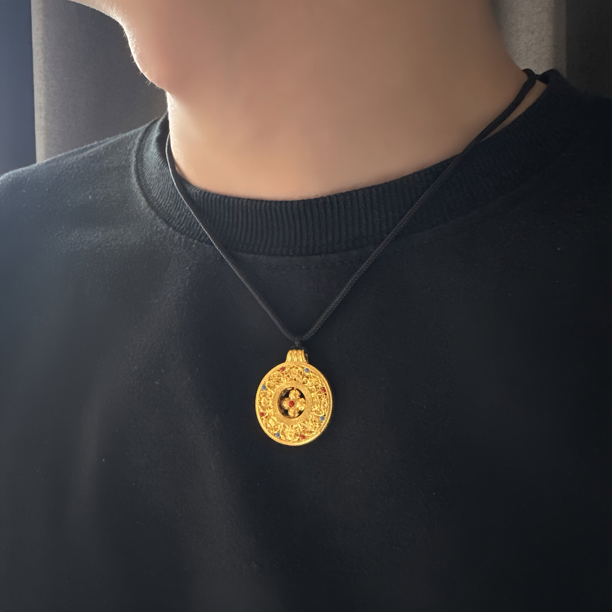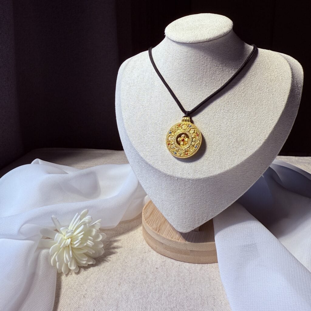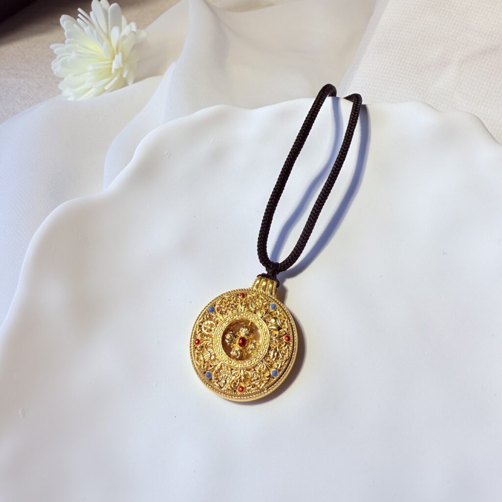 以圓滿鏤空設計搭配細緻金工,象徵吉祥與庇佑,黑繩搭配更添沉穩質感,適合日常佩戴亦可作為護身祝福的典藏之選。