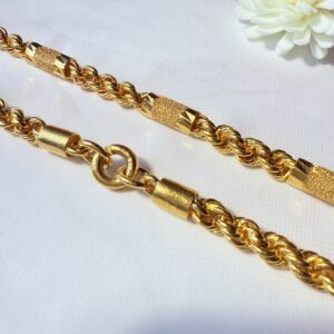 麻花繩鏈款黃金項鍊,搭配鑽