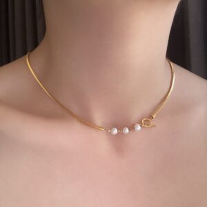 蛇骨鍊珍珠黃金項鍊,結合俐