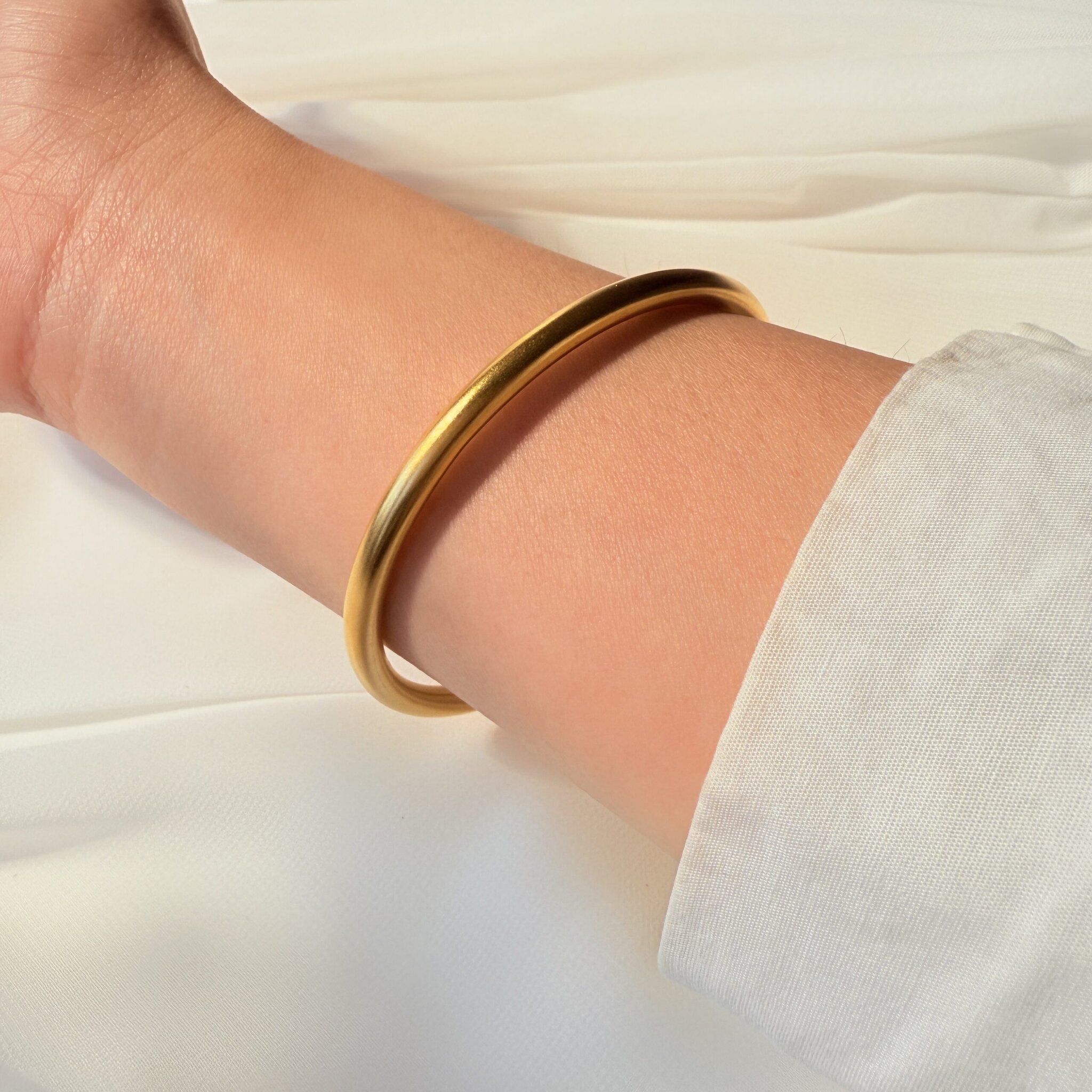 素面設計的黃金手鐲,圓潤線條展現低調質感光澤,簡約卻耐看,無論日常佩戴或搭配正裝,都能凸顯典雅氣質與專屬品味。