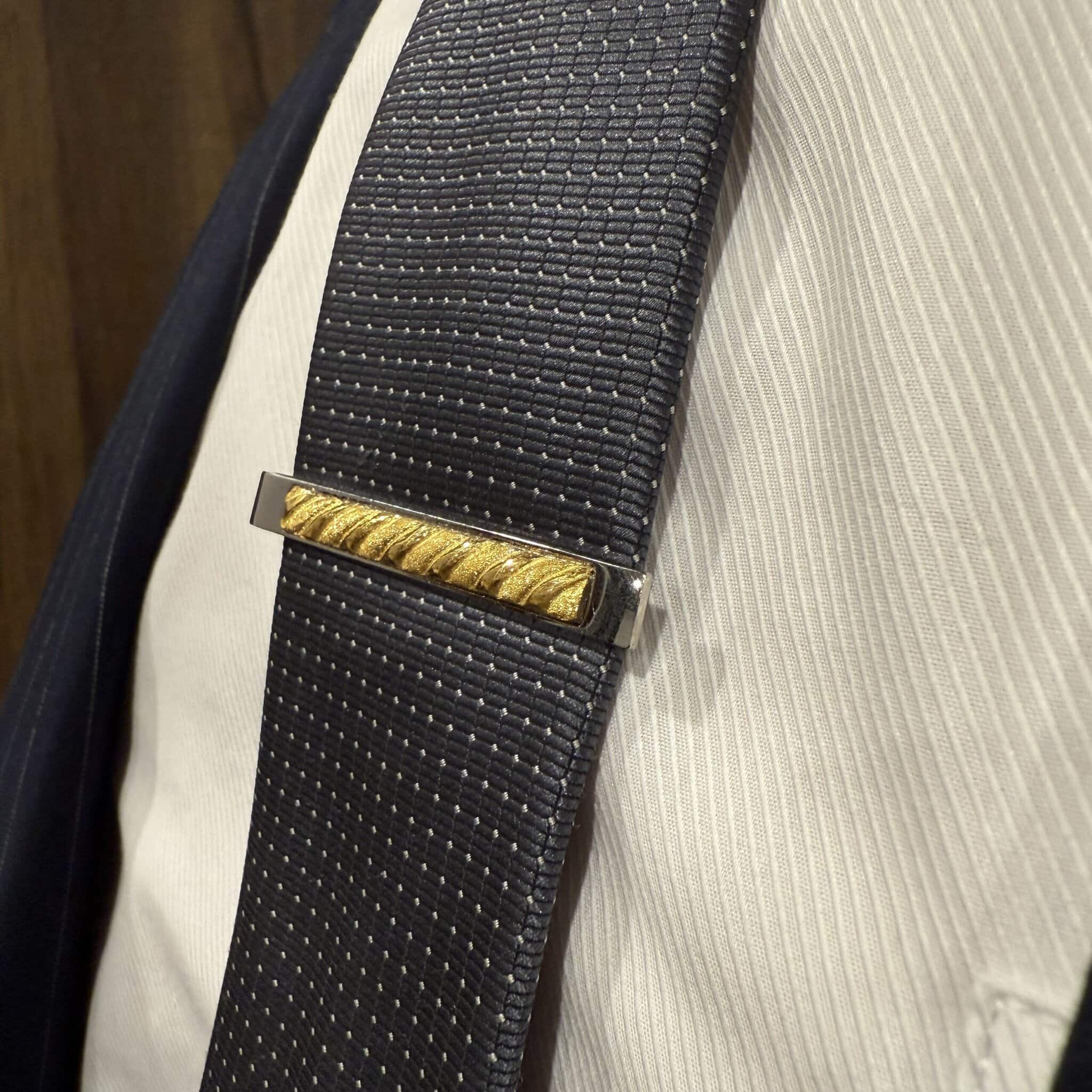 紳士質感黃金領夾,霧銀夾身搭配金色紋理點綴,低調奢華不搶眼。防滑夾口不傷布料,穩固不移位;商務場合、婚禮、面試與送禮皆體面有型。