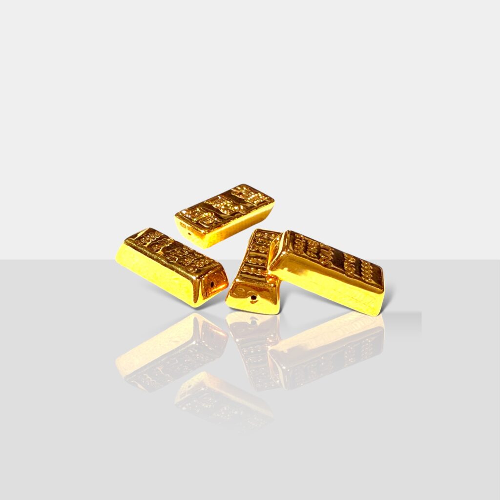 立體吉字雕紋與圓角厚實外型相映、細緻雕刻與金色光澤相映,寓意生意興隆、財運步步高,尺寸輕巧好收藏