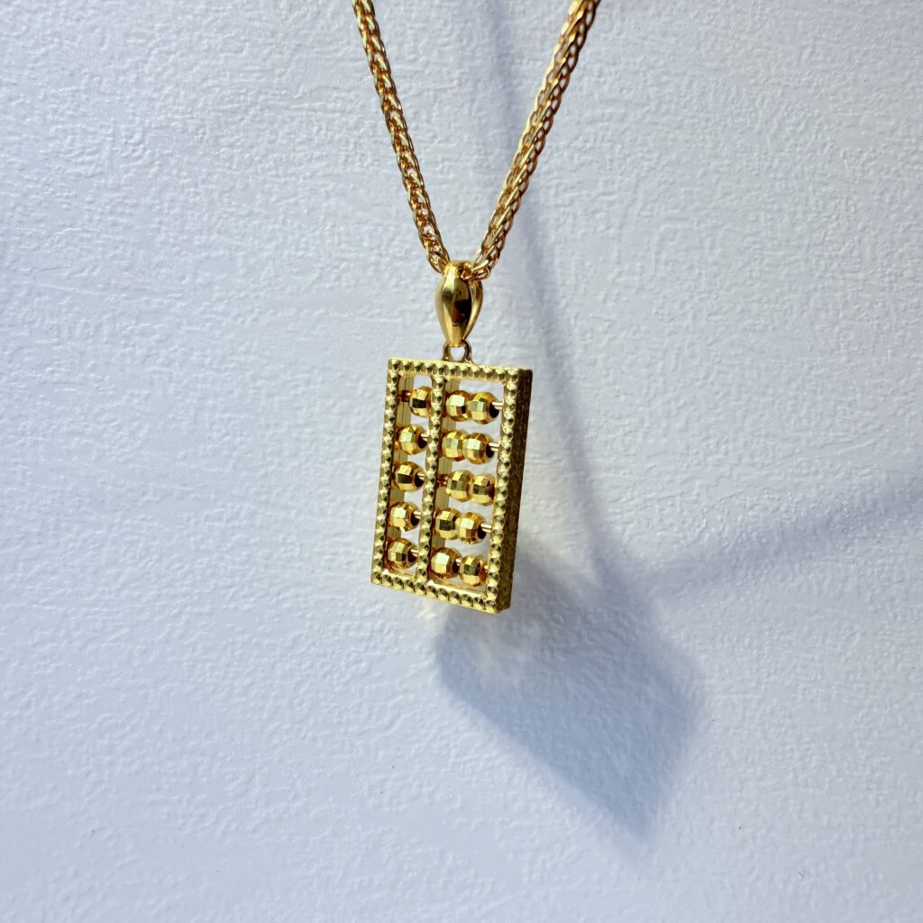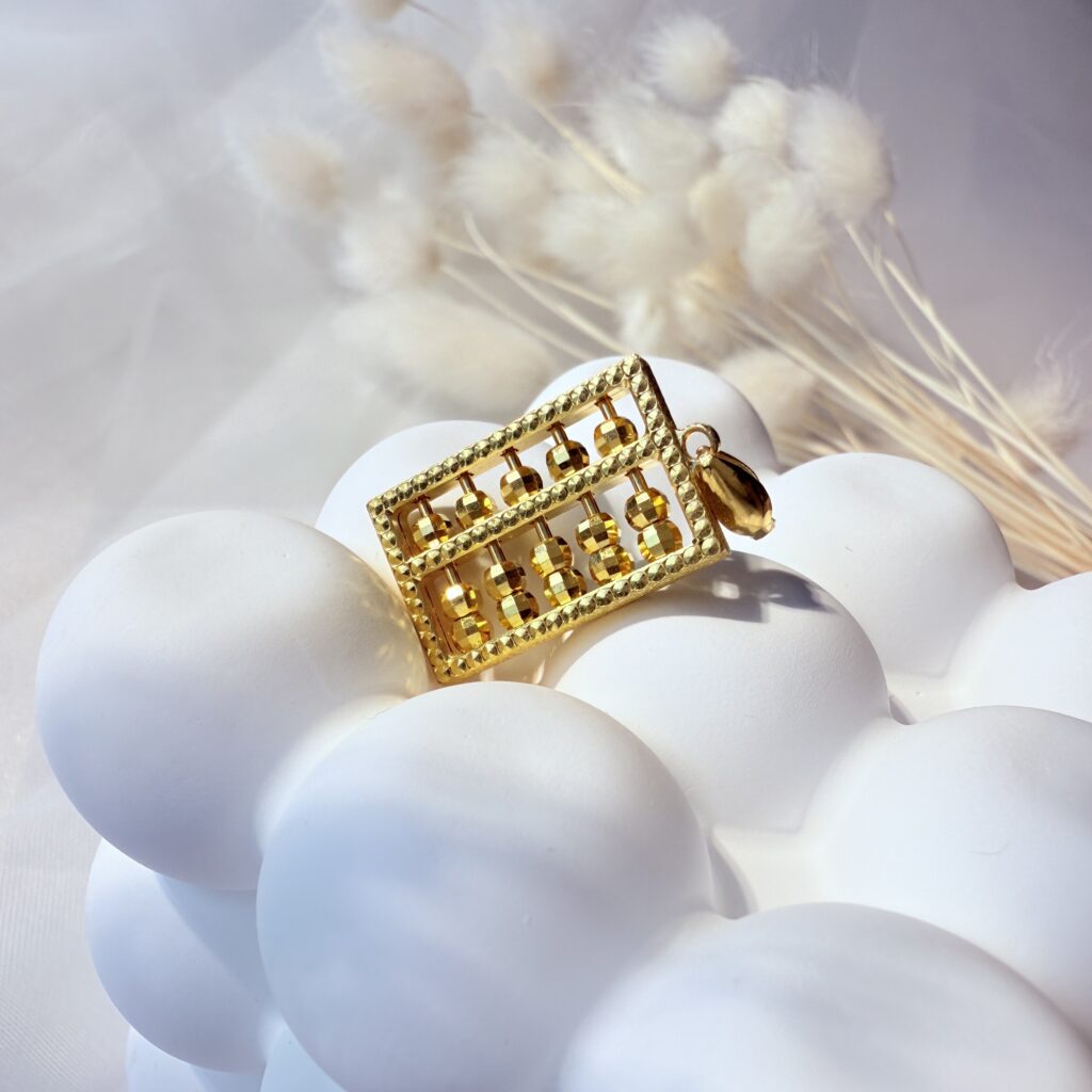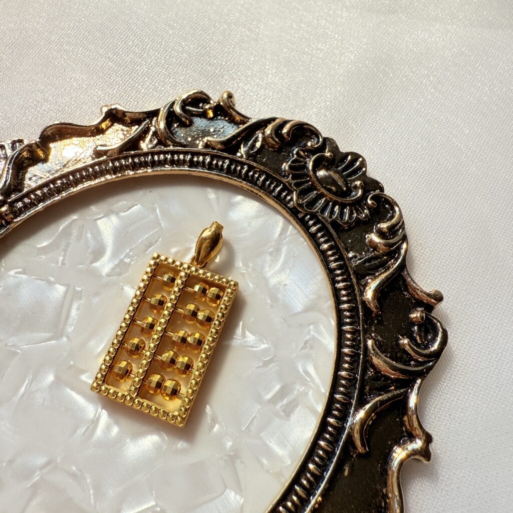 24K黃金精工打造算盤墜,珠粒靈動可轉動,寓意精打細算、財源滾滾,適合日常佩戴或送禮收藏。
