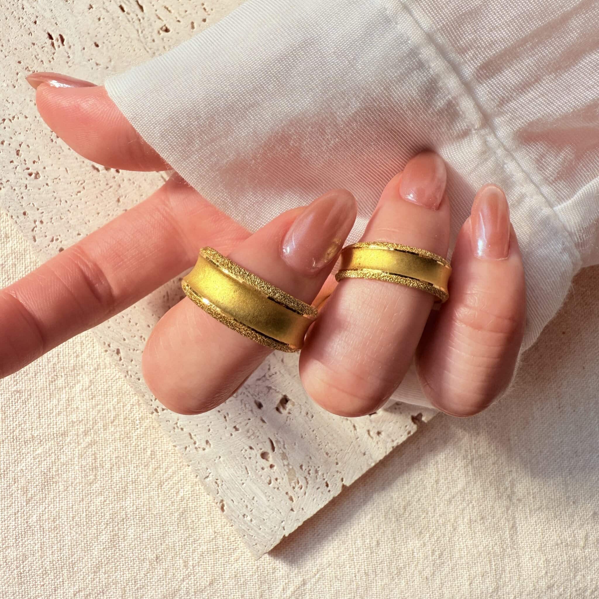 金砂流光戒指,細膩雙緣工藝展現低調奢華,無論單戴或作為情侶對戒都適合,展現獨特個性與質感。