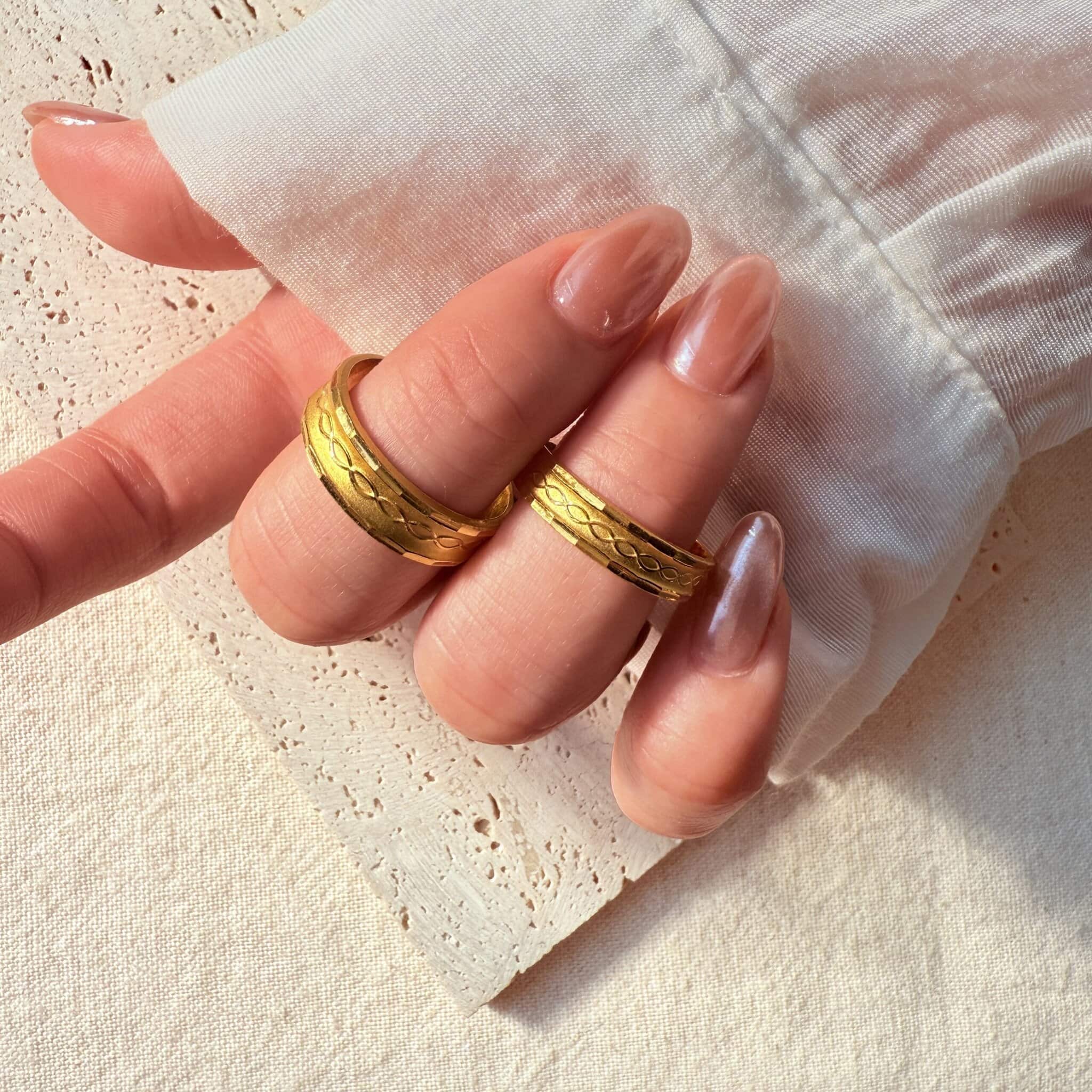 戒身以流暢線條與浮雕紋路呈現,簡約卻充滿細節。適合情侶、日常配戴或紀念禮物,展現低調奢華與恆久意義。