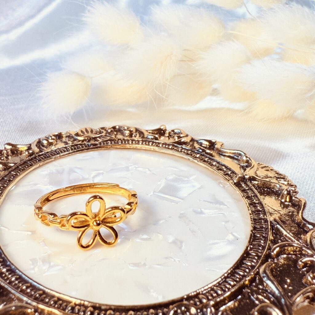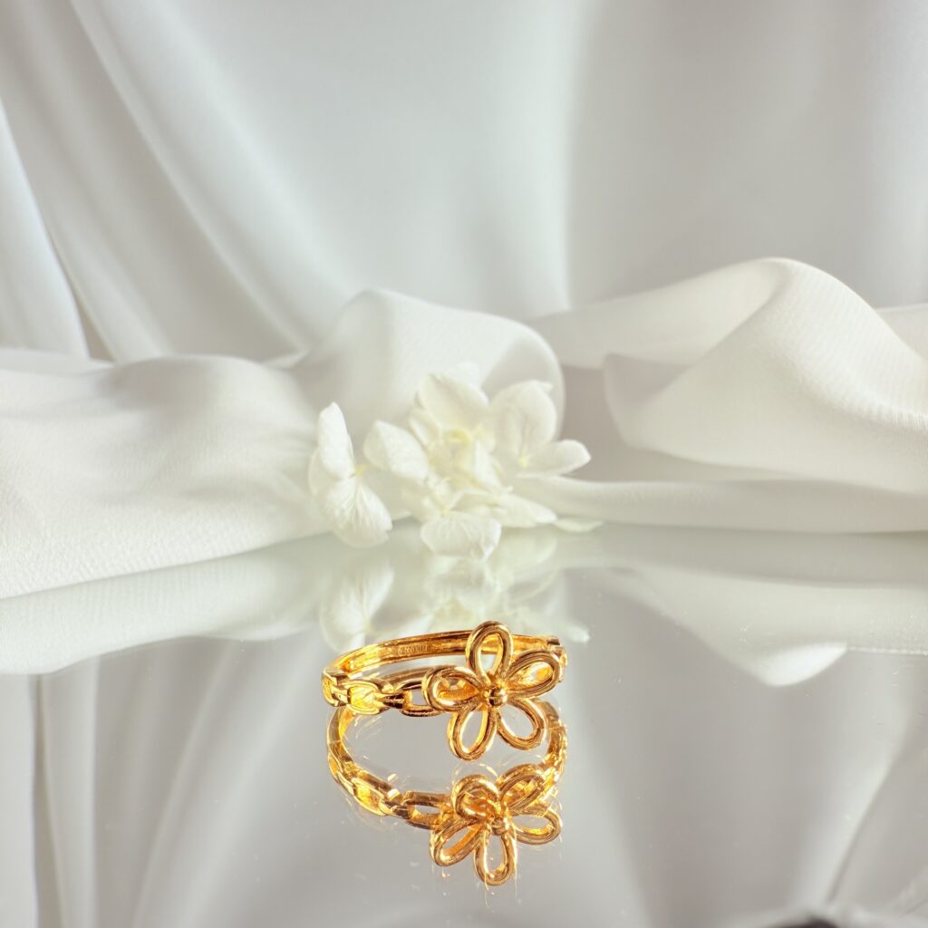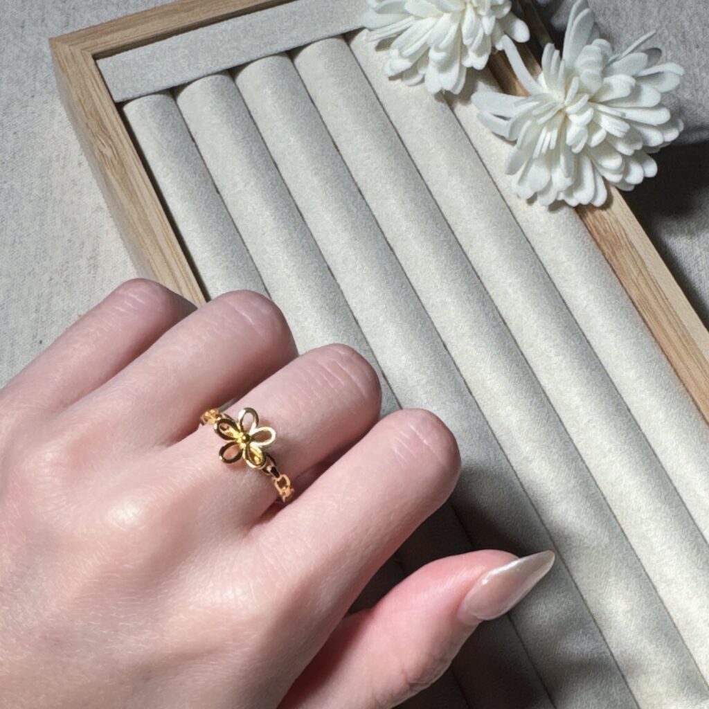 立體花瓣設計展現優雅氣質。輕盈線條與黃金光澤交織,讓日常穿搭也綻放浪漫氛圍,送禮或自戴都極具品味。