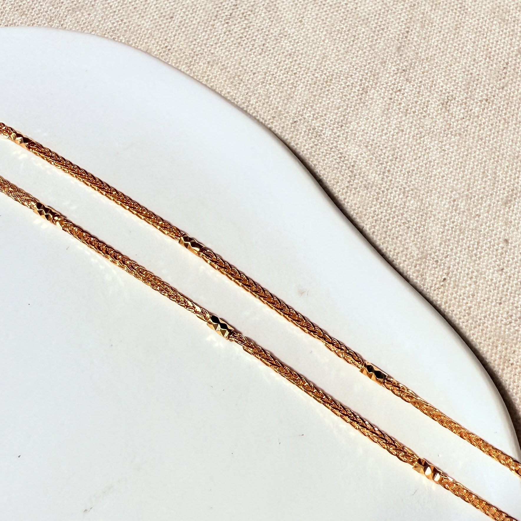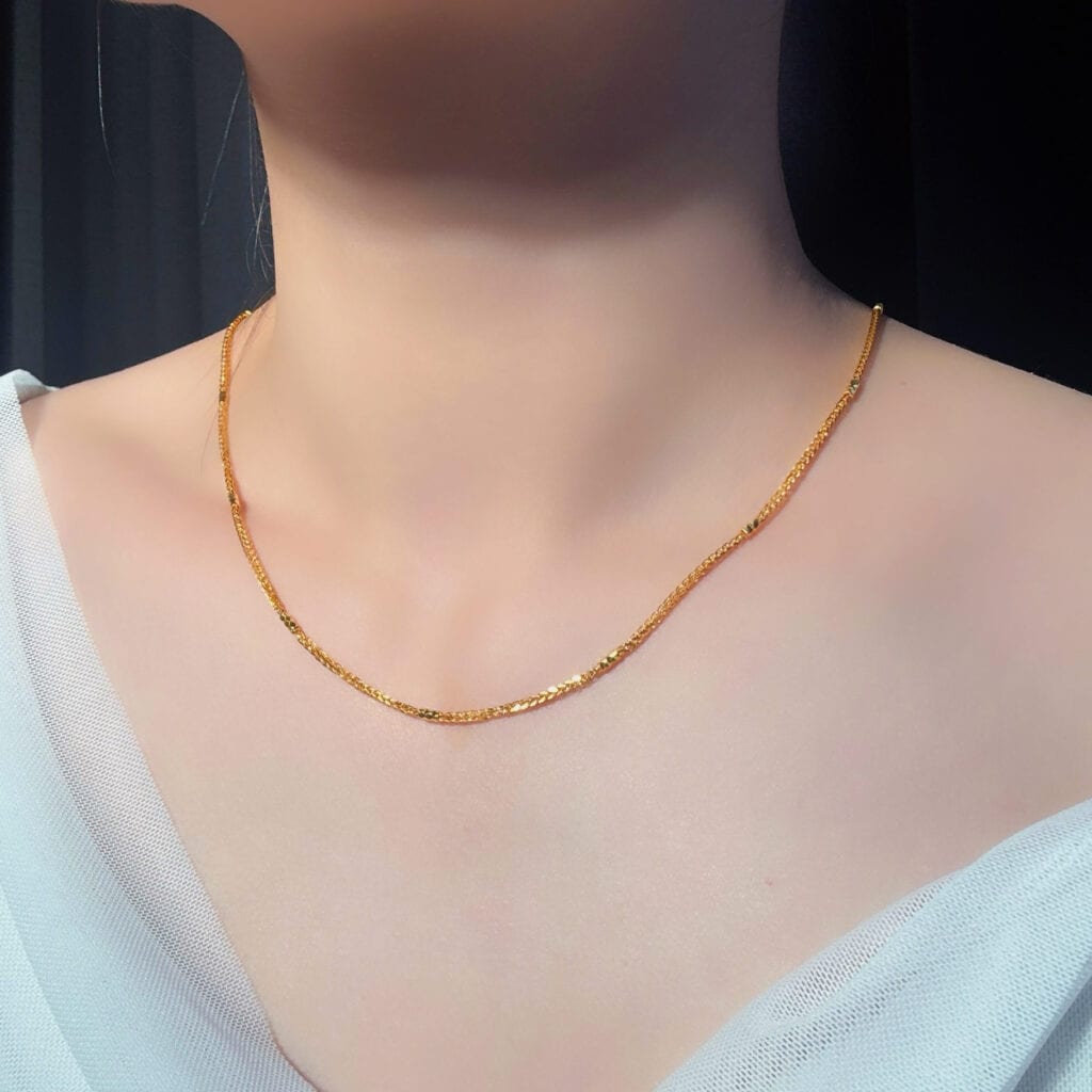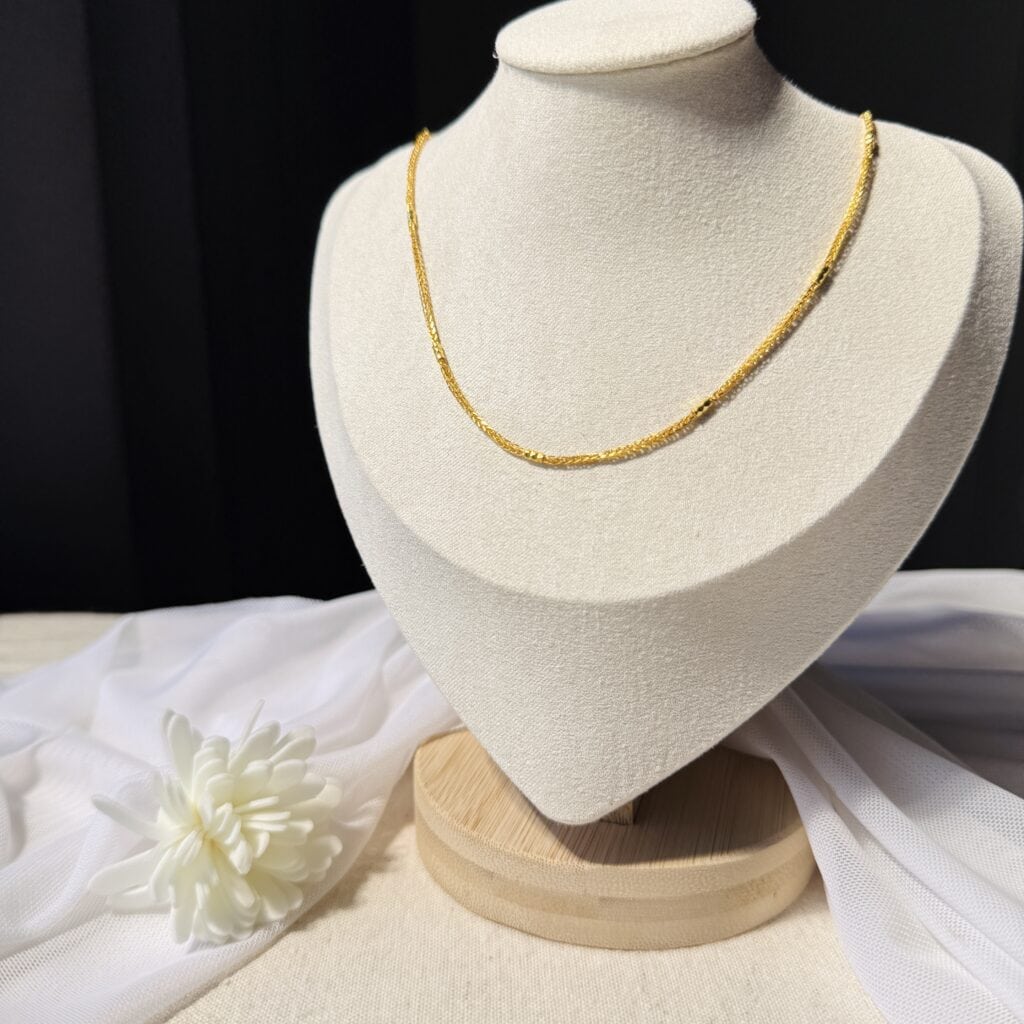 星點般的設計,讓黃金在頸間閃耀細緻光芒。精緻交織工藝搭配立體小珠,輕盈又耐戴,無論日常或特別場合都能展現低調奢華的質感魅力。