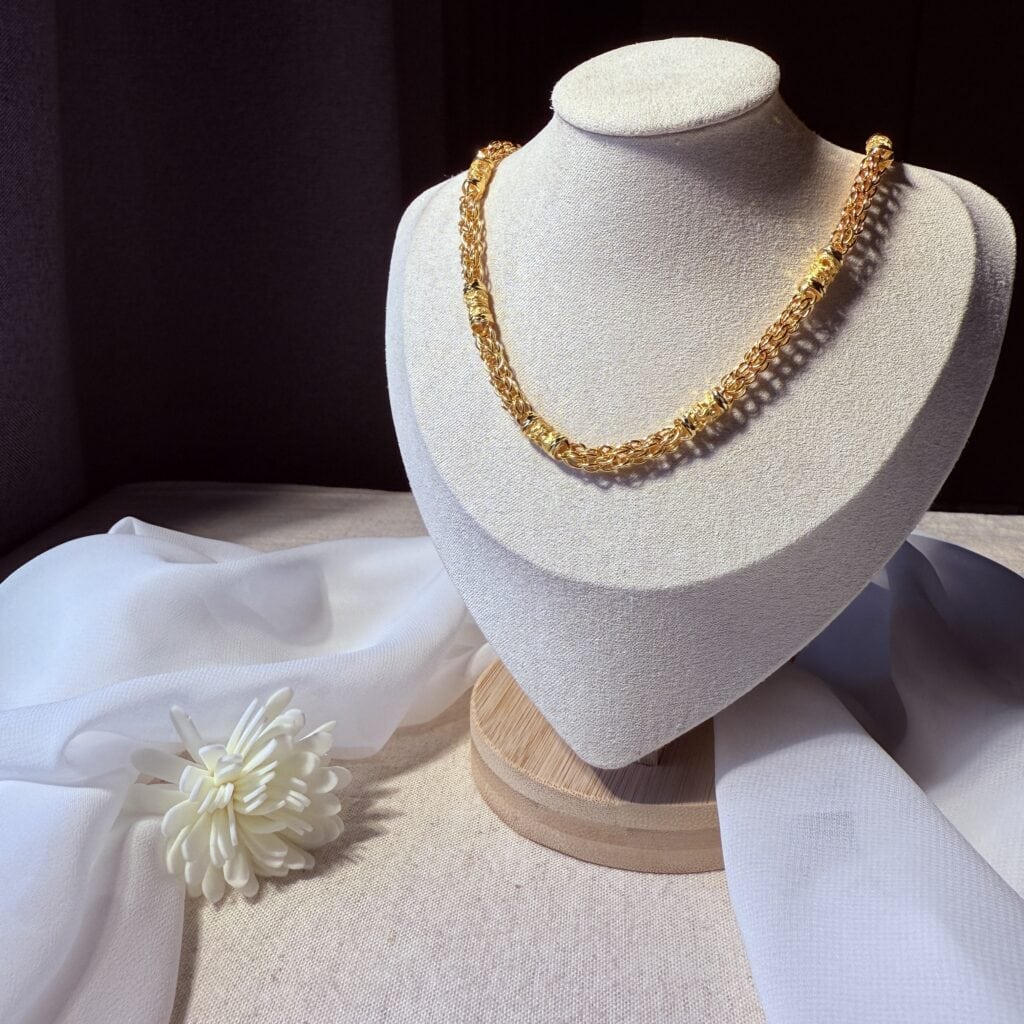 麥穗鍊黃金項鍊,採多股編織鏈身搭配雕花圓筒間隔,展現立體層次與華麗質感。厚實份量襯托男士沉穩霸氣,無論日常配戴或正式場合,都能彰顯尊榮風範。
