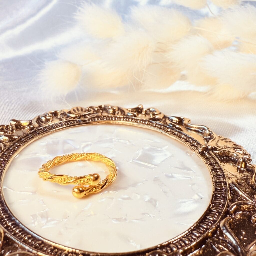 麻花纏繞設計,展現黃金柔韌之美。開口活口設計,舒適貼合指間,日常百搭又具獨特質感,象徵堅韌與溫柔交織的守護。