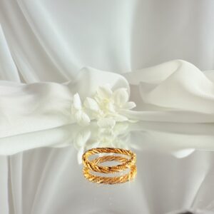 以細緻扭繩線條呈現自然光影的流動感,佩戴時輕巧貼合,展現低調卻鮮明的優雅層次感,單戴或搭配皆能襯出乾淨質感。